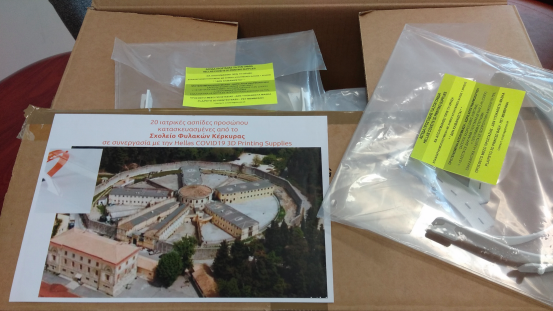 Ιατρικές ασπίδες προσώπου που κατασκευάσαν οι ίδιοι προσέφεραν στο Γενικό Νοσοκοµείο Κέρκυρας οι εκπαιδευόµενοι και εκπαιδευτές του Σχολείου Φυλακών Κέρκυρας, σε συνεργασία µε την πανελλήνια εθελοντική πλατφόρµα HELLAS COVID19 3D Printing Supplies.