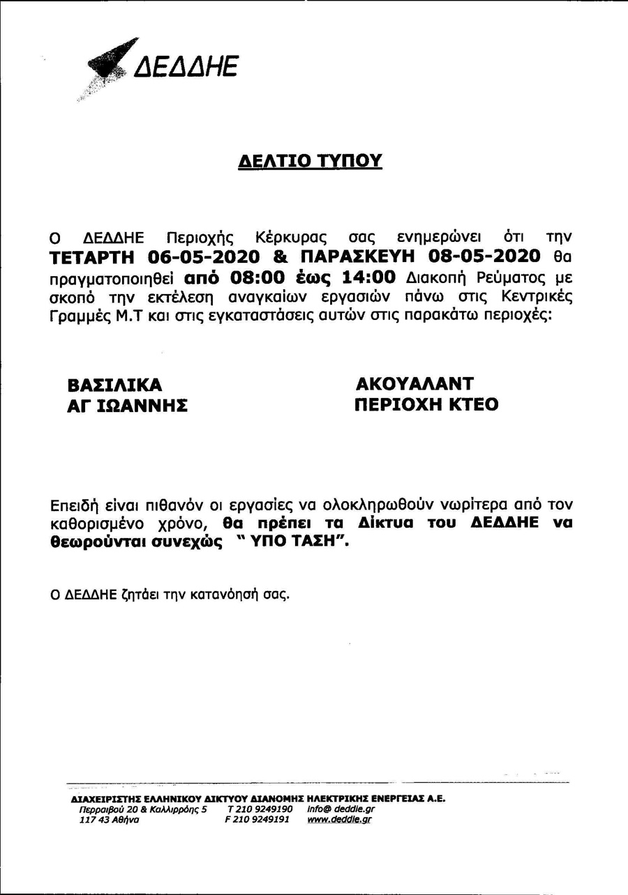 ΚΟΙΝΩΝΙΑΕΛΕΥΘΕΡΟΕΙΔΗΣΕΙΣ Διακοπές ρεύματος στη μέση Κέρκυρα… Διακοπές ρεύματος θα πραγματοποιηθούν την Τετάρτη και την Παρασκευή σε περιοχές της Μέσης Κέρκυρας. Last updated: 04/05/2020 08:44 CorfuPress.com Published: 04/05/2020 Share SHARE Διακοπές ρεύματος θα πραγματοποιηθούν την Τετάρτη και την Παρασκευή σε περιοχές της Μέσης Κέρκυρας. Διακοπή ρεύματος τη Δευτέρα-Δείτε που Που θα γίνει διακοπή ρεύματος την Τετάρτη Που θα γίνει διακοπή ρεύματος την Τετάρτη Που θα γίνουν προγραμματισμένες διακοπές ρεύματος το διάστημα 23-25 Αυγούστου Έρχεται διακοπή ρεύματος στη Βόρεια Κέρκυρα Share This Article Facebook Whatsapp Whatsapp Email Copy Link Print Previous Article Σήμερα, 4 Μαΐου, γιορτάζει… Next Article Ποζίδης: Ευτυχώς ο κοινός νους δεν «έμεινε στο σπίτι» Δεν υπάρχουν Σχόλια Δεν υπάρχουν Σχόλια Αφήστε μια απάντηση Ακύρωση απάντησηςΗ ηλ. διεύθυνση σας δεν δημοσιεύεται. Τα υποχρεωτικά πεδία σημειώνονται με *Σχόλιο * Όνομα * Email * Ιστότοπος Αποθήκευσε το όνομά μου, email, και τον ιστότοπο μου σε αυτόν τον πλοηγό για την επόμενη φορά που θα σχολιάσω. ΑναζήτησηΑναζήτησηRecent PostsΌλα τα μάτια στον Θοδωρή, τον καπετάνιο μας! Τη Δευτέρα 22 Σεπτεμβρίου γιορτάζει… Σαν Σήμερα 22/9: Τα σημαντικότερα γεγονότα… Η πρόγνωση του καιρού Έφηβοι Ιονίου: Με περίπατο, συνεχίζουν στο Rising Stars! Recent CommentsΧωρίς σχόλια για εμφάνιση.
