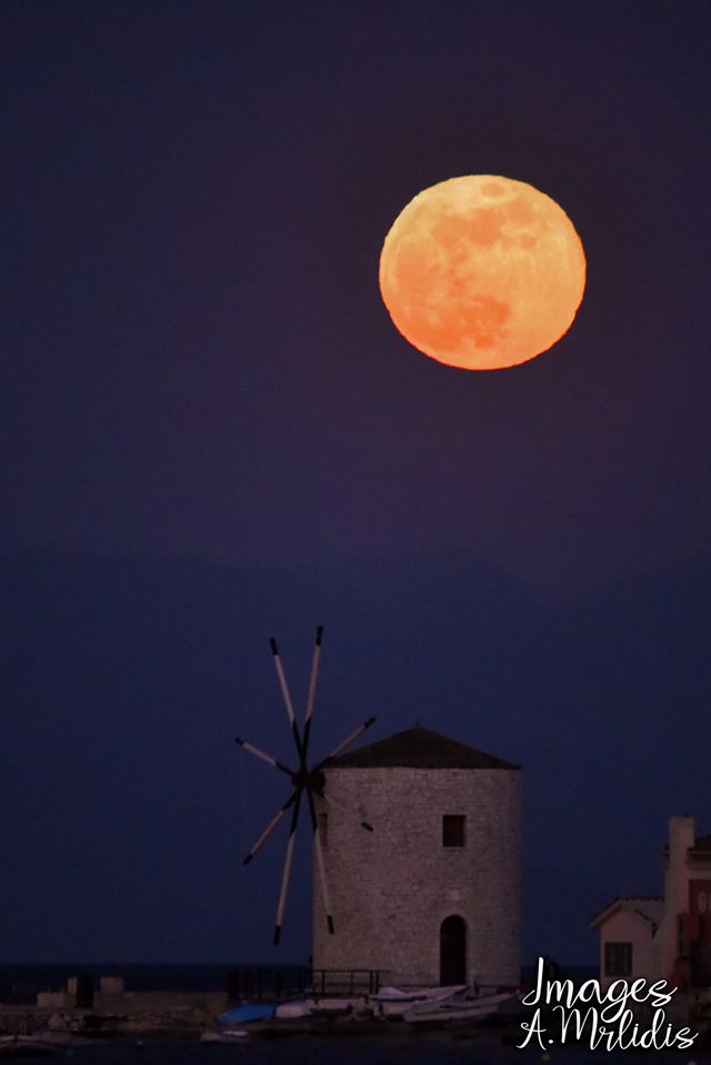 Δείτε δύο καταπληκτικές φωτογραφίες του Αλέξανδρου Μελίδη από την τελευταία υπερπανσέληνο της χρονιάς πάνω από τον Ανεμόμυλο.