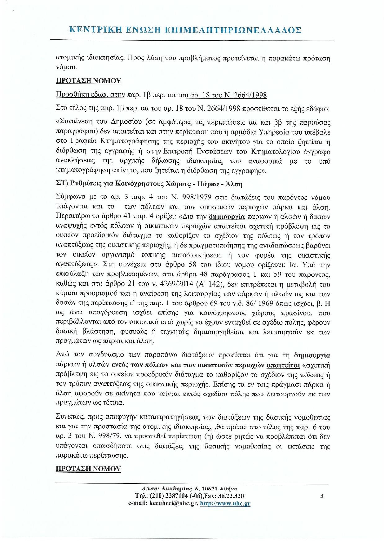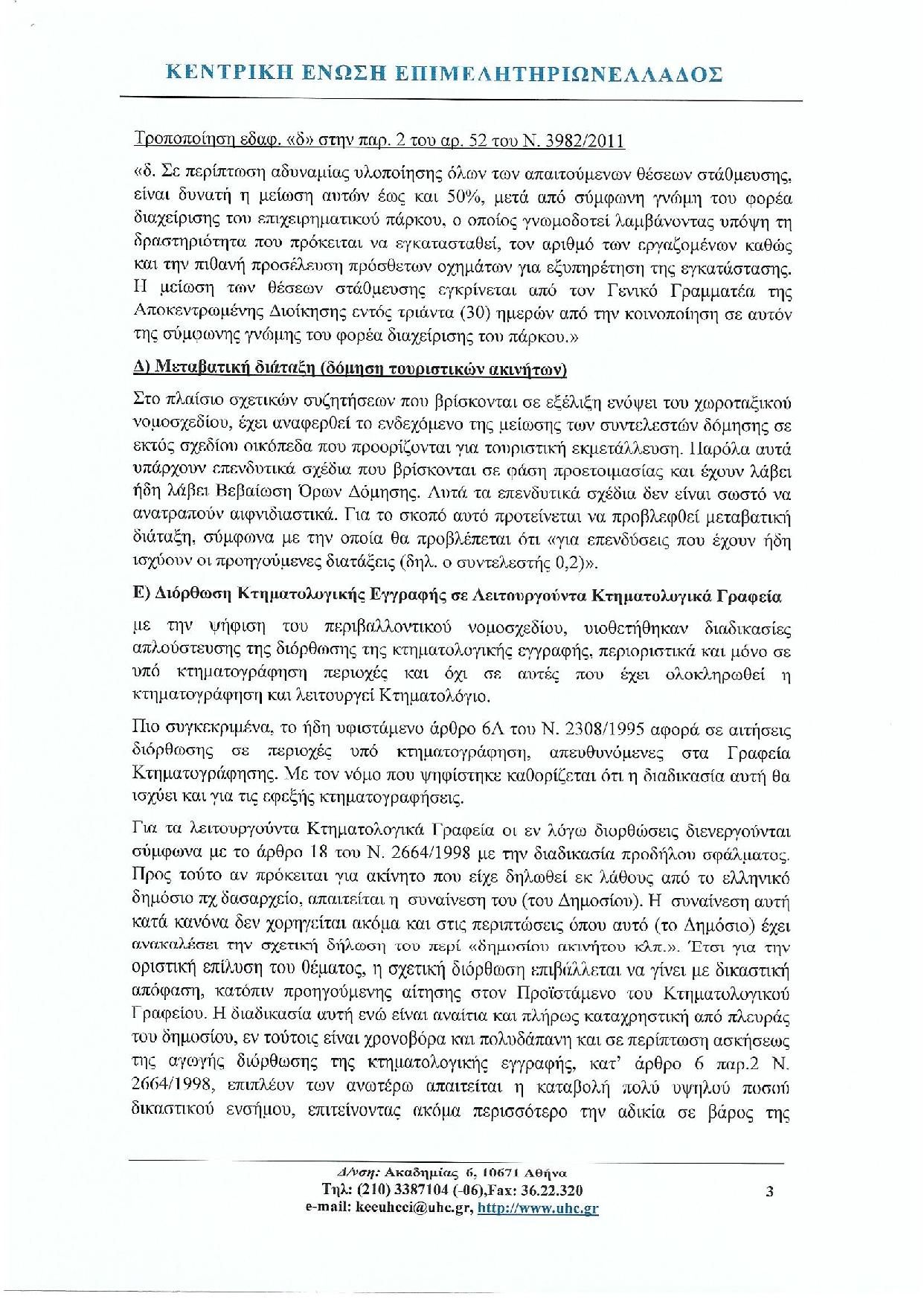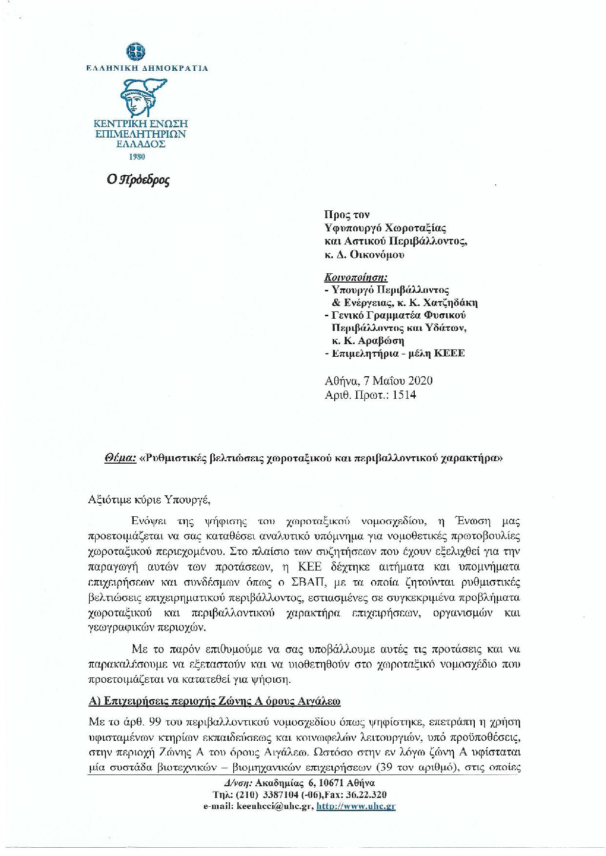 Eπιστολή της Κεντρικής ‘Ένωσης Επιμελητηρίων Ελλάδος προς τον Υφυπουργό Χωροταξίας και Αστικού Περιβάλλοντος Δ. Οικονόμου για τις ρυθμιστικές βελτιώσεις χωροταξικού και περιβαλλοντικού χαρακτήρα.
