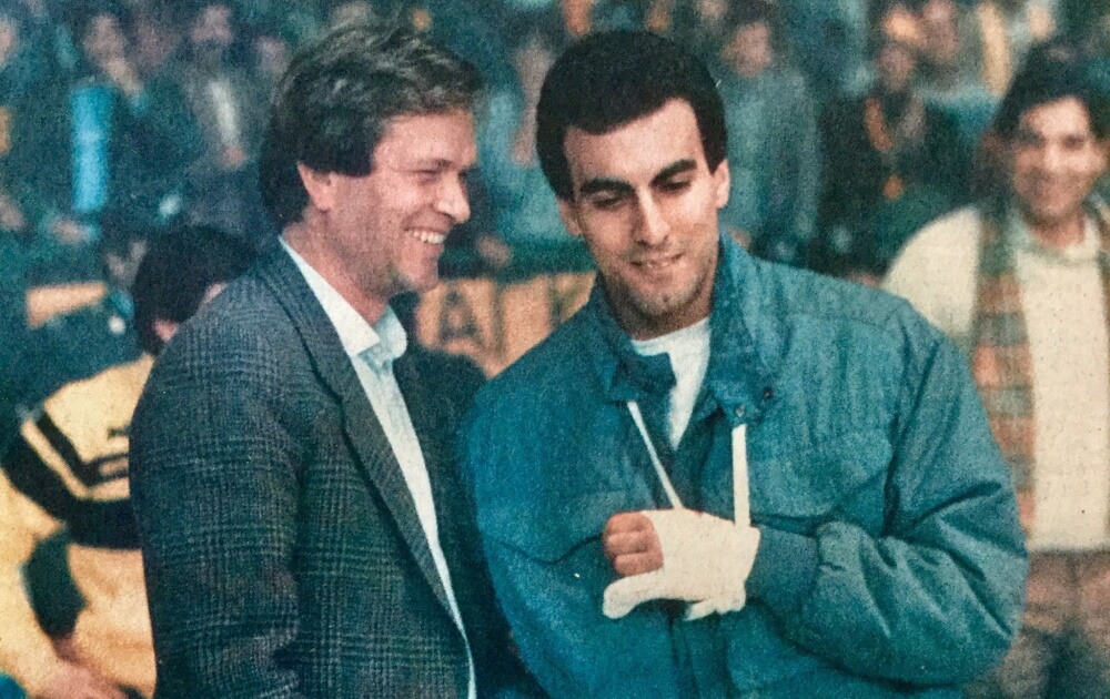 Οι «κιτρινόμαυροι» είχαν πάρει τον τίτλο το ’83 μένοντας αήττητοι στο «Αλεξάνδρειο» και με κορυφαίο ματς το 72-70 επί του Παναθηναϊκού μπροστά σε 7.000 κόσμου, στο πιο κρίσιμο ματς της σεζόν, έχοντας Γκάλη, Παραμανίδη, Γεωργιάδη, Δοξάκη, Ρωμανίδη και άλλους. Την επόμενη χρονιά, ο Αρης είναι και πάλι εντυπωσιακός και ολοκληρώνει τη σεζόν με 24-2, ισοβαθμώντας στην πρώτη θέση με τον Παναθηναϊκό και ο τίτλος κρίθηκε υπέρ των «πράσινων» στο ιστορικό μπαράζ της Κέρκυρας (80-76) ενώ χάνει και το Κύπελλο από τον ΠΑΟΚ (74-70). Το καλοκαίρι του 1984 όμως ο Άρης αποκτά από τον Ιωνικό Νικαίας τον δεύτερο παίκτη – θρύλο του ελληνικού μπάσκετ, τον Παναγιώτη Γιαννάκη. Και, λίγους μήνες μετά, φτάνει δια… περιπάτου στο πρώτο νταμπλ της ιστορίας του, τέτοιες ημέρες του ’85. Ήταν το κερασάκι στην τούρτα; Όχι, ήταν η αρχή μιας ομάδας που εξελίχθηκε στην πρώτη αυτοκρατορία του ελληνικού μπάσκετ και ο Ιωαννίδης είχε καταφέρει να κάνει πράξη, μια πρωτοποριακή ιδέα που είχε στο μυαλό του: να έχει στην ίδια ομάδα τόσο τον Γκάλη, όσο και τον Γιαννάκη, αν υπήρχε τότε παμεστοιχιμα θα ήταν αουτσάιντερ να «δέσουν»!