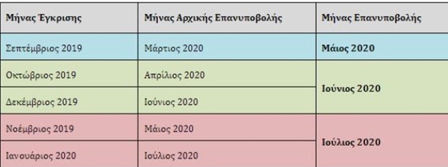 Παρατίθεται πίνακας, σύμφωνα με τις νέες οδηγίες του Υπουργείου, για τον μήνα υποβολής των αιτήσεων.