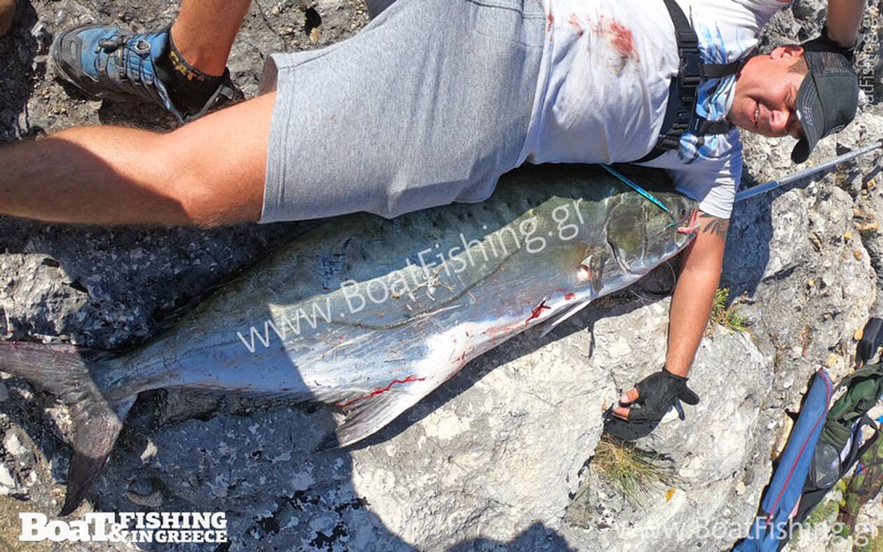Οι αλιείς που κατάφεραν να βγάλουν αυτό το μεγάλο ψάρι είναι οι Γιάννης Μακρής και Τόνι Κιόσοβ και το έπιασαν με την τεχνική Shore Jigging χρησιμοποιώντας τεχνητό δόλωμα, ένα μεταλλικό πλάνο που καθώς βυθίζεται μοιάζει με κάποιο τρομαγμένο ψάρι δελεάζοντας τα μεγάλα αρπακτικά όπως οι λίτσες.