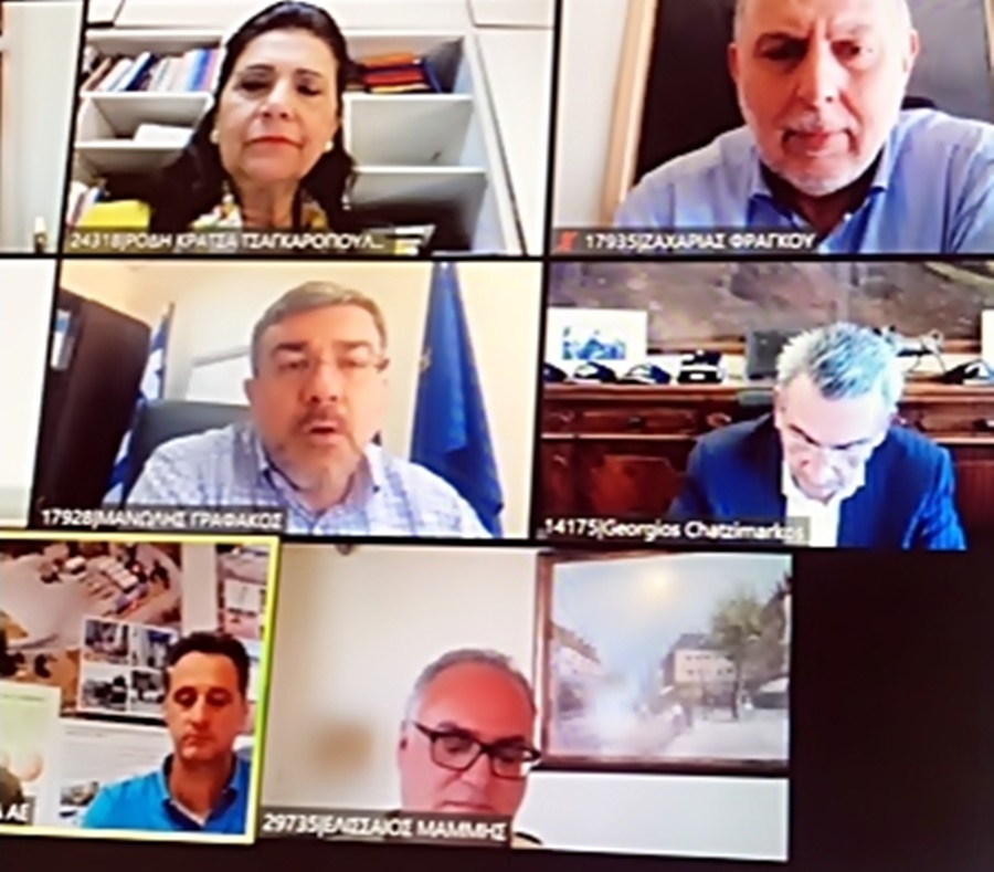 Σύσκεψη εργασίας μεταξύ του Γενικού Γραμματέα Συντονισμού Διαχείρισης Αποβλήτων στο Υπουργείο Περιβάλλοντος Μανώλη Γραφάκου και των Περιφερειαρχών Ρόδης Κράτσα – Τσαγκαροπούλου (Ιονίων Νήσων) και Γιώργου Χατζημάρκου (Νοτίου Αιγαίου) έγινε μέσω τηλεδιάσκεψης για την εφαρμογη του οδικού χάρτη υλοποίησης των νέων Φορέων Διαχείρισης Στερεών Αποβλήτων τόσο στην Περιφέρεια Ιονίων Νήσων, όσο και στην Περιφέρεια Νοτίου Αιγαίου.