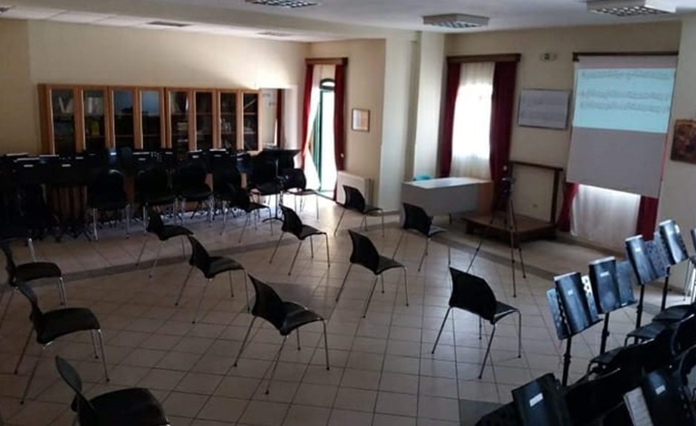 Έτοιμο το κτήριο της φιλαρμονικης μας για τα μάθηματα. Η θεωρία σύμφωνα με τους νέους κανονισμούς ασφαλείας μεταφέρθηκε στην αίθουσα προβων !!!