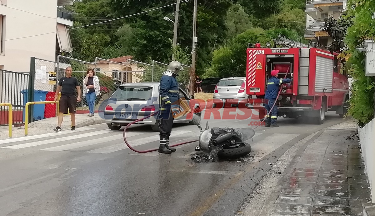 Αφού, μια μηχανή, στο ύψος του 10oυ δημοτικού σχολείου της περιοχής, έπιασε ξαφνικά φωτιά, για άγνωστο λόγο. Ευτυχώς, ο οδηγός πρόλαβε την κατάσταση και κατέβηκε από το όχημα του.