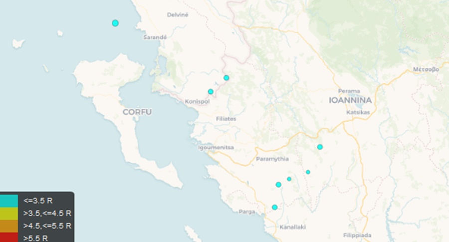 -Στις 03:44, 30,6 χλμ ΒΑ Κέρκυρας, 2,1 ρίχτερ με εστιακό βάθος στα 5 χλμ.