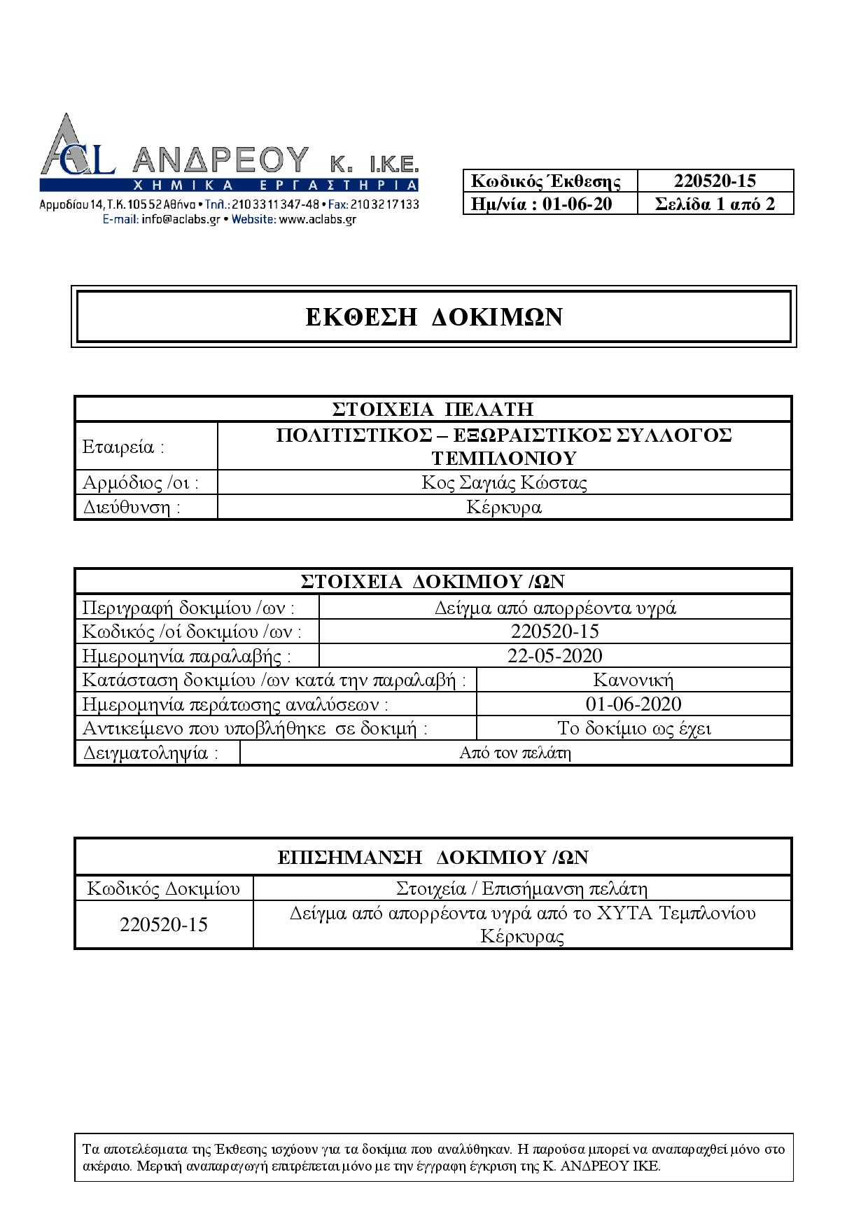 Έτσι λοιπόν, όπως σημειώνει ο Σύλλογος, “στις 18 Μαίου 2020 μέλη του ΔΣ του Συλλόγου μας συνέλεξαν δείγμα από σημείο με συντεταγμένες 39.647254Πλάτος-19.80398Μήκος και στάλθηκε για ανάλυση στο χημικό εργαστήριο Ανδρέου Ι.Κ.Ε στην Αθήνα για εξέταση.