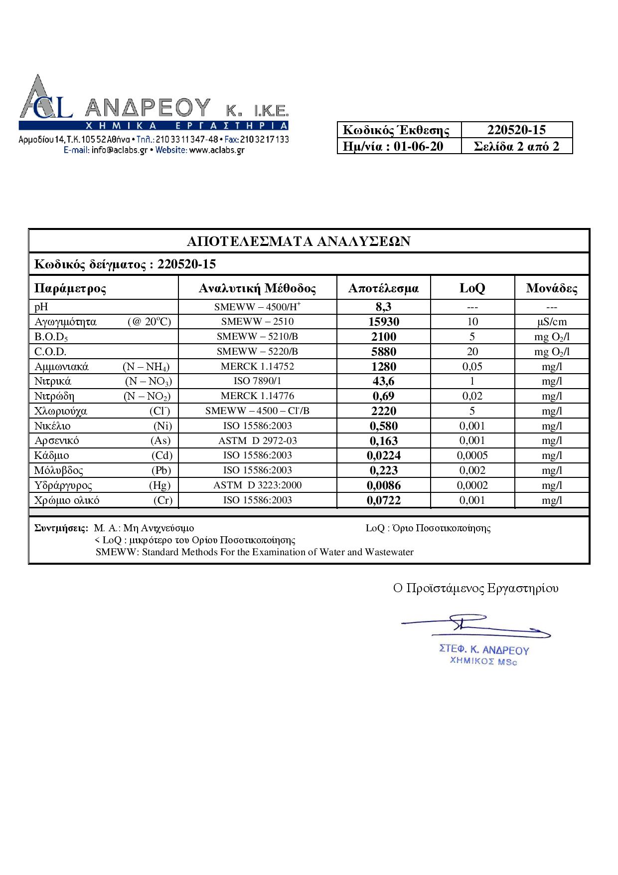 Παραλάβαμε τις απαντήσεις που αποδεικνύουν την εγκληματική μόλυνση του περιβάλλοντος και του υδροφόρου ορίζοντα κάτι που συμβαίνει για τουλάχιστον 20 έτη στην περιοχή μας. Τα αποτελέσματα των αναλύσεων έδειξαν: