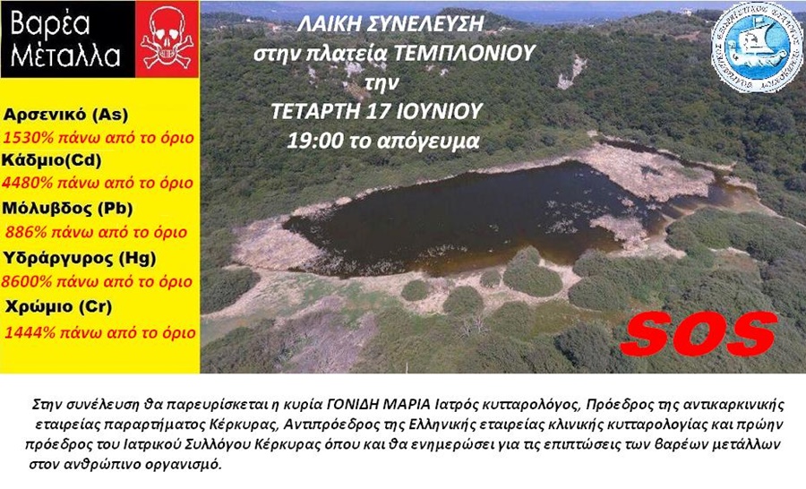 Μετά από αυτήν την εξέλιξη νιώθουμε την ευθύνη και καλούμε ΛΑΙΚΗ ΣΥΝΕΛΕΥΣΗ στην πλατεία ΤΕΜΠΛΟΝΙΟΥ την ΤΕΤΑΡΤΗ 17 ΙΟΥΝΙΟΥ και ώρα 19:00 το απόγευμα για να ενημερώσουμε τους κατοίκους του χωριού, της ευρύτερης περιοχής, φορείς ,συλλόγους και κάθε ενδιαφερόμενο πολίτη για τον κίνδυνο που διατρέχει η υγεία όλων μας από την ύπαρξη ΒΑΡΕΩΝ ΜΕΤΑΛΛΩΝ στο νερό.