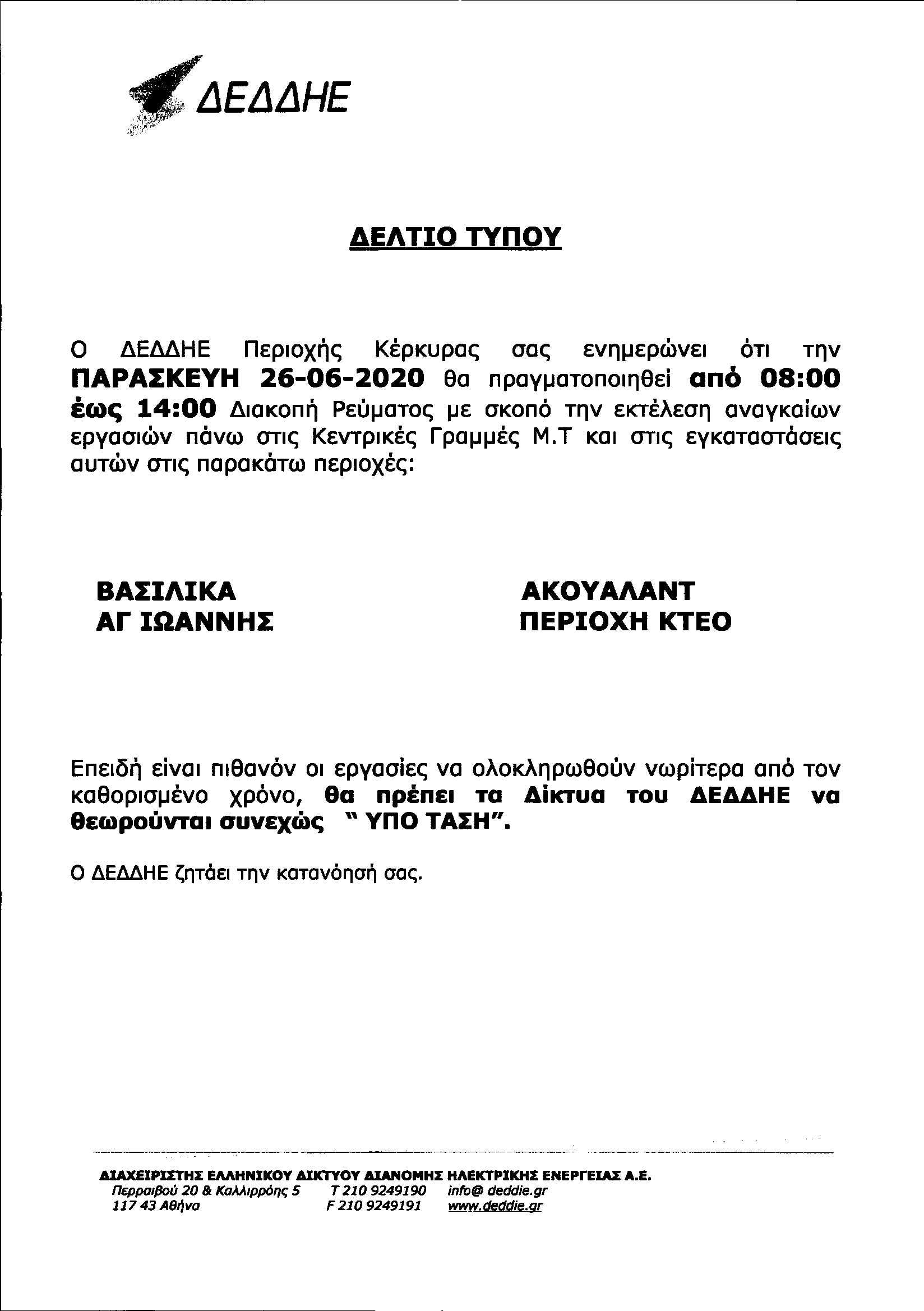 ΚΟΙΝΩΝΙΑΕΛΕΥΘΕΡΟΕΙΔΗΣΕΙΣ Νέες διακοπές ρεύματος στη Μέση Κέρκυρα Αιτία, η εκτέλεση εργασιών από το ΔΕΔΔΗΕ. Last updated: 05/10/2025 02:46 CorfuPress.com Published: 24/06/2020 Share SHARE Αιτία, η εκτέλεση εργασιών από το ΔΕΔΔΗΕ. Διακοπή ρεύματος τη Δευτέρα-Δείτε που Που θα γίνει διακοπή ρεύματος την Τετάρτη Που θα γίνει διακοπή ρεύματος την Τετάρτη Επιστολή Επιμελητηρίου προς ΔΕΔΔΗΕ για τις πολύωρες διακοπές ρεύματος Που θα γίνουν προγραμματισμένες διακοπές ρεύματος το διάστημα 23-25 Αυγούστου Share This Article Facebook Whatsapp Whatsapp Email Copy Link Print Previous Article Ερώτηση (και) Αυλωνίτη για τα προβλήματα στα ΕΠΑΛ Next Article Με 14 θέματα θα συνεδριάσει η ΠΕΔΙΝ Δεν υπάρχουν Σχόλια Δεν υπάρχουν Σχόλια Αφήστε μια απάντηση Ακύρωση απάντησηςΗ ηλ. διεύθυνση σας δεν δημοσιεύεται. Τα υποχρεωτικά πεδία σημειώνονται με *Σχόλιο * Όνομα * Email * Ιστότοπος Αποθήκευσε το όνομά μου, email, και τον ιστότοπο μου σε αυτόν τον πλοηγό για την επόμενη φορά που θα σχολιάσω. ΑναζήτησηΑναζήτησηRecent PostsΌλα τα μάτια στον Θοδωρή, τον καπετάνιο μας! Τη Δευτέρα 22 Σεπτεμβρίου γιορτάζει… Σαν Σήμερα 22/9: Τα σημαντικότερα γεγονότα… Η πρόγνωση του καιρού Έφηβοι Ιονίου: Με περίπατο, συνεχίζουν στο Rising Stars! Recent CommentsΧωρίς σχόλια για εμφάνιση.
