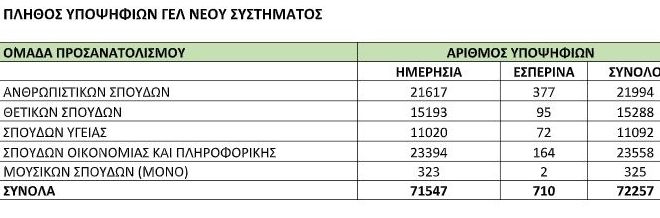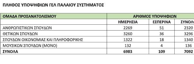 Αναλυτικά στατιστικά για τους υποψηφίους των θετικών σπουδών από τα ημερήσια Λύκεια