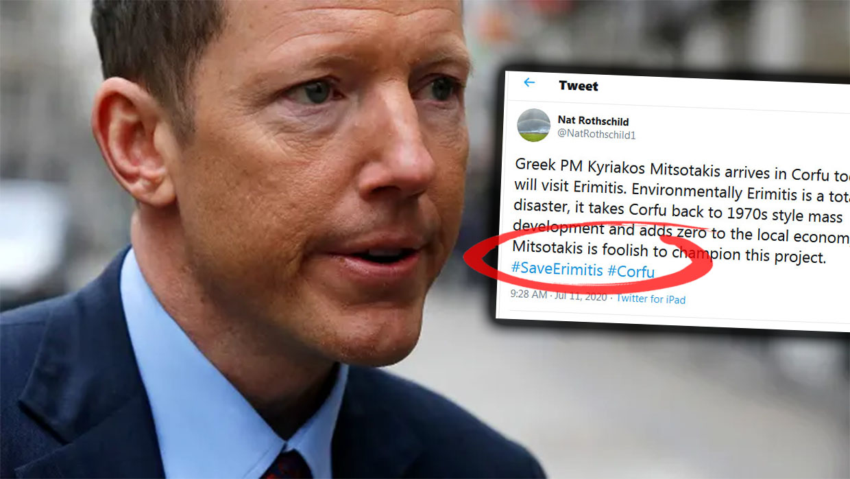 Με δύο αναρτήσεις του, μία πριν και μια μετά από την φιέστα της NCH στον Ερημίτη υπό τον Πρωθυπουργό, ο Νατ Ροτσάιλντ, διαχειριστής ενός εκ των μεγαλύτερων επενδυτικών κεφαλαίων στον κόσμο και βασικό στέλεχος της ισχυρότατης οικογένειας τραπεζιτών, αποκάλεσε τον Κυριάκο Μητσοτάκη «ανόητο» και την επένδυση του Ερημίτη ως «φιάσκο»!