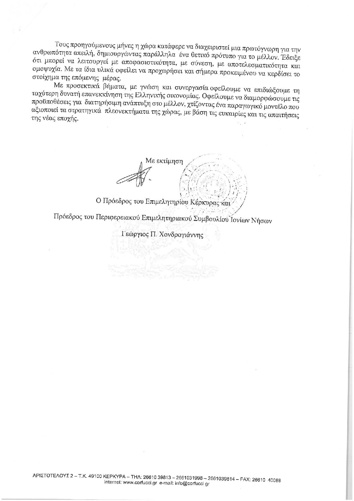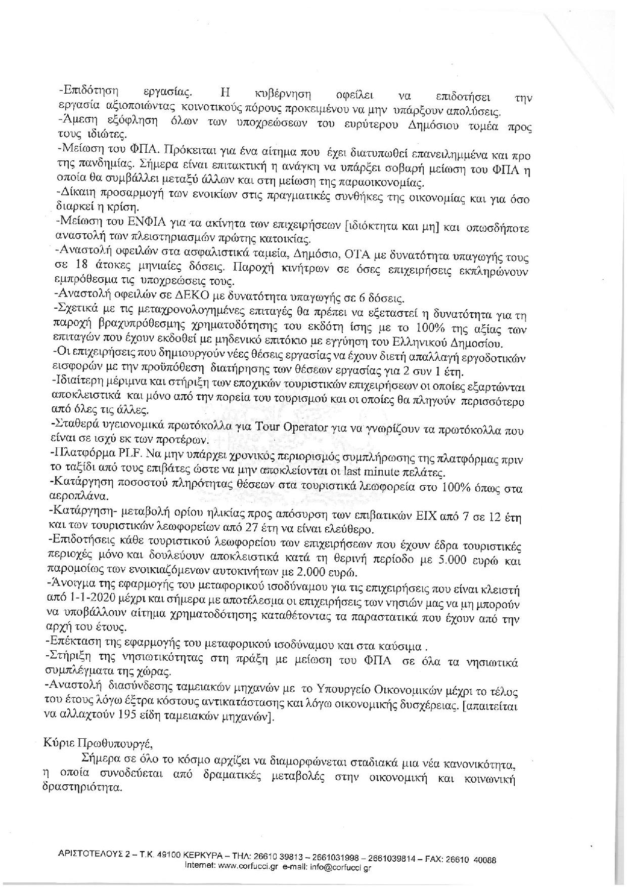 Ο Πρόεδρος του Επιμελητηρίου Κέρκυρας κατέθεσε επιστολή προς τον Πρωθυπουργό κατά την επίσκεψη του τελευταίου στο νησί των Φαιάκων.