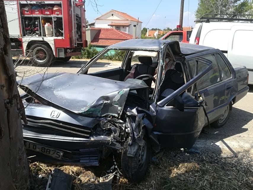 Όταν, μια 80χρονη οδηγός αυτοκινήτου προσέκρουσε με το όχημά της σε δέντρο με συνέπεια, αφενός να τραυματιστεί και αφετέρου να εγκλωβιστεί στο ΙΧ.