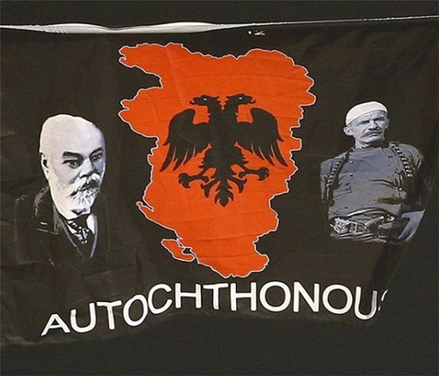 Η σημαία, που είχε εμφανιστεί και το 2014 κατά την διάρκεια του ποδοσφαιρικού αγώνα της Σερβίας με την Αλβανία, είναι πλαισιωμένη από από τις φωτογραφίες του ιδρυτή του Αλβανικού κράτους Ισμαήλ Κεμάλι και του Αλβανού πολεμιστή Ίσα Μπολετίνι, πρωτοστάτη στον ανταρτοπόλεμο κατά της Σερβίας. Συνοδεύεται δε από τη λέξη «Αυτόχθονες» που σημαίνει πως θεωρούν ότι όλες οι περιοχές που εμφανίζονται στον εν λόγω χάρτη ανήκουν στους Αλβανούς. Ο χάρτης αυτός «φτάνει» μέχρι τη Θεσπρωτία, ενώ περιλαμβάνει και την Κέρκυρα.