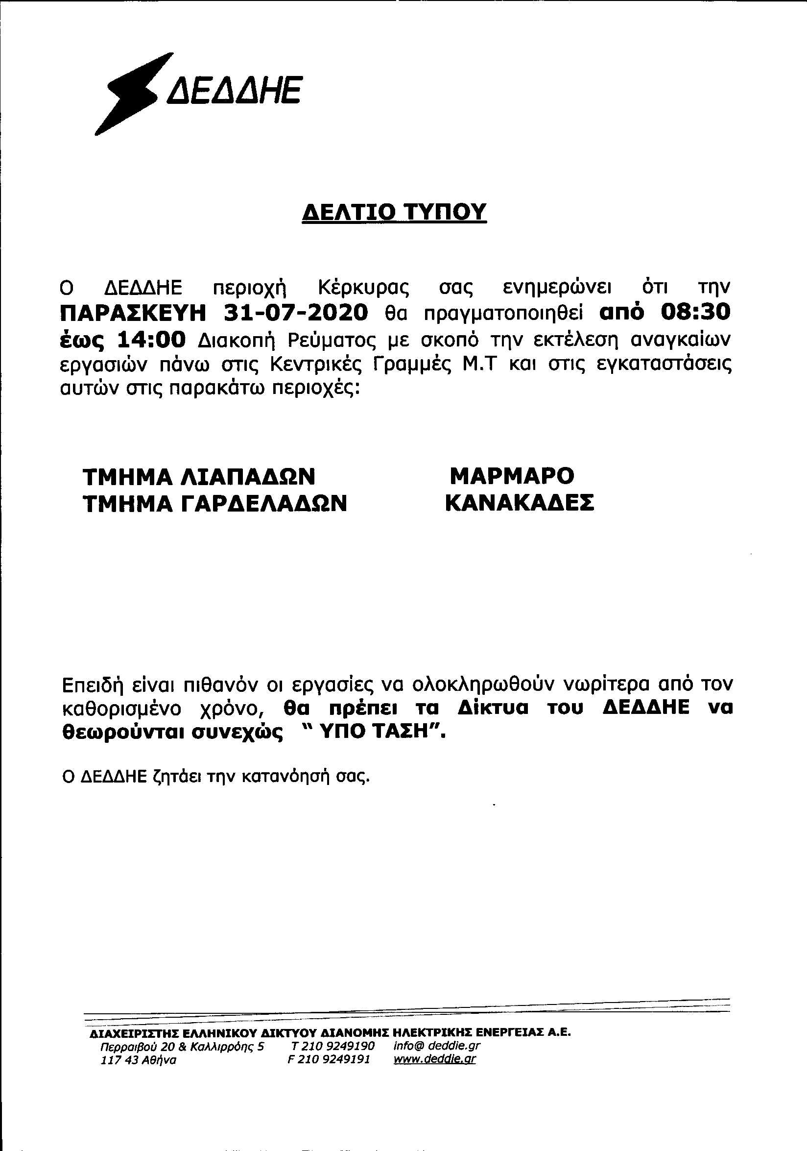 ΚΟΙΝΩΝΙΑΕΛΕΥΘΕΡΟΕΙΔΗΣΕΙΣ Διακοπές ρεύματος στη μέση Κέρκυρα, την Παρασκευή Αιτία των διακοπών ρεύματος, οι εργασίες που θα πραγματοποιήσει ο ΔΕΔΔΗΕ. Last updated: 29/07/2020 15:07 CorfuPress.com Published: 29/07/2020 Share SHARE Αιτία των διακοπών ρεύματος, οι εργασίες που θα πραγματοποιήσει ο ΔΕΔΔΗΕ. Διακοπή ρεύματος τη Δευτέρα-Δείτε που Που θα γίνει διακοπή ρεύματος την Τετάρτη Που θα γίνει διακοπή ρεύματος την Τετάρτη Που θα γίνουν προγραμματισμένες διακοπές ρεύματος το διάστημα 23-25 Αυγούστου Έρχεται διακοπή ρεύματος στη Βόρεια Κέρκυρα Share This Article Facebook Whatsapp Whatsapp Email Copy Link Print Previous Article ΛΑΣΥ: Μέτρα στήριξης του εισοδήματος των μισθωτών σχολικών κυλικείων Next Article Έκλεψε τσάντα από κατάστημα στο Λαγανά Δεν υπάρχουν Σχόλια Δεν υπάρχουν Σχόλια Αφήστε μια απάντηση Ακύρωση απάντησηςΗ ηλ. διεύθυνση σας δεν δημοσιεύεται. Τα υποχρεωτικά πεδία σημειώνονται με *Σχόλιο * Όνομα * Email * Ιστότοπος Αποθήκευσε το όνομά μου, email, και τον ιστότοπο μου σε αυτόν τον πλοηγό για την επόμενη φορά που θα σχολιάσω. ΑναζήτησηΑναζήτησηRecent PostsΌλα τα μάτια στον Θοδωρή, τον καπετάνιο μας! Τη Δευτέρα 22 Σεπτεμβρίου γιορτάζει… Σαν Σήμερα 22/9: Τα σημαντικότερα γεγονότα… Η πρόγνωση του καιρού Έφηβοι Ιονίου: Με περίπατο, συνεχίζουν στο Rising Stars! Recent CommentsΧωρίς σχόλια για εμφάνιση.