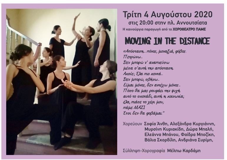 Το χοροθέατρο του ΠΑΜΕ, τμήμα της πολιτιστικής ομάδας του Πανεργατικού Αγωνιστικού ΜΕτώπου, παρουσιάζει την καινούρια του παραγωγή με τίτλο: “Moving in the distance”