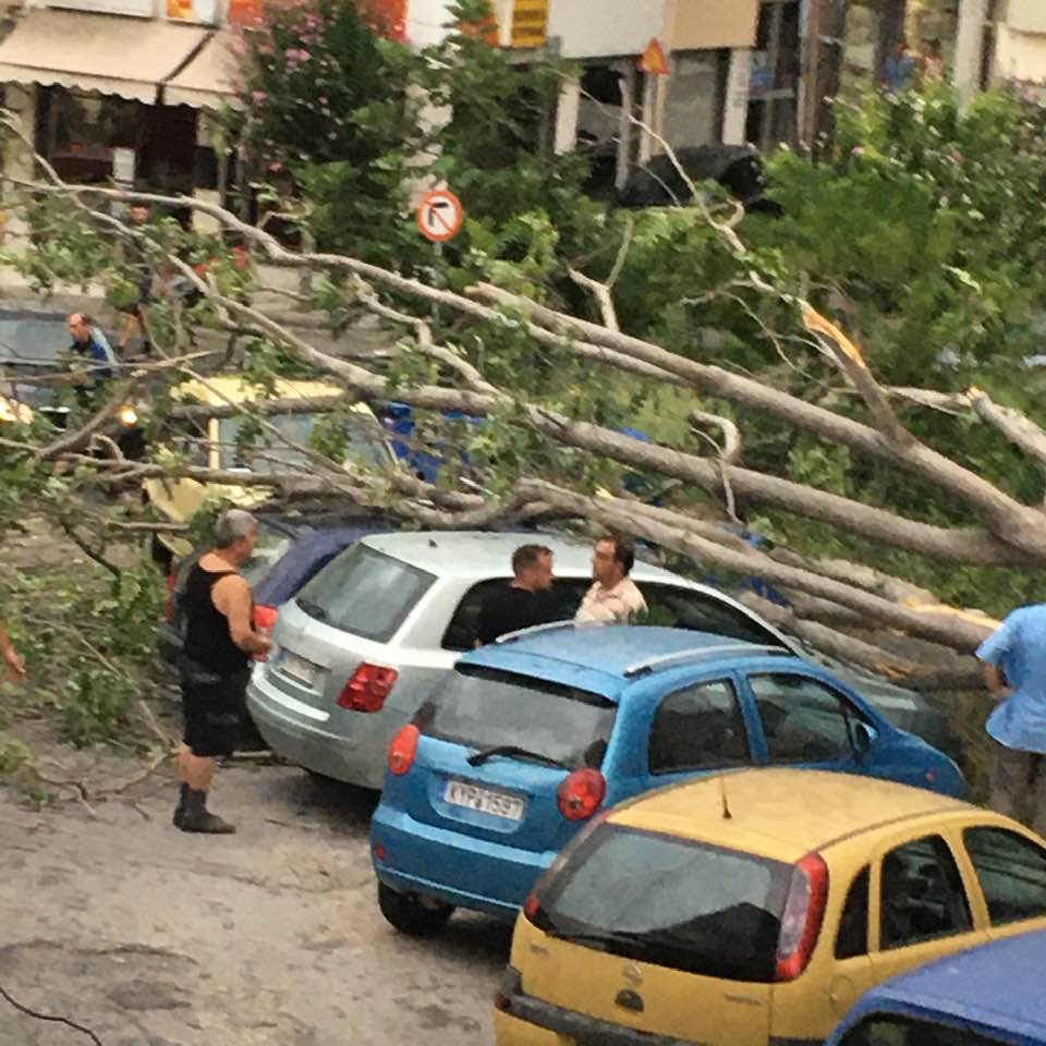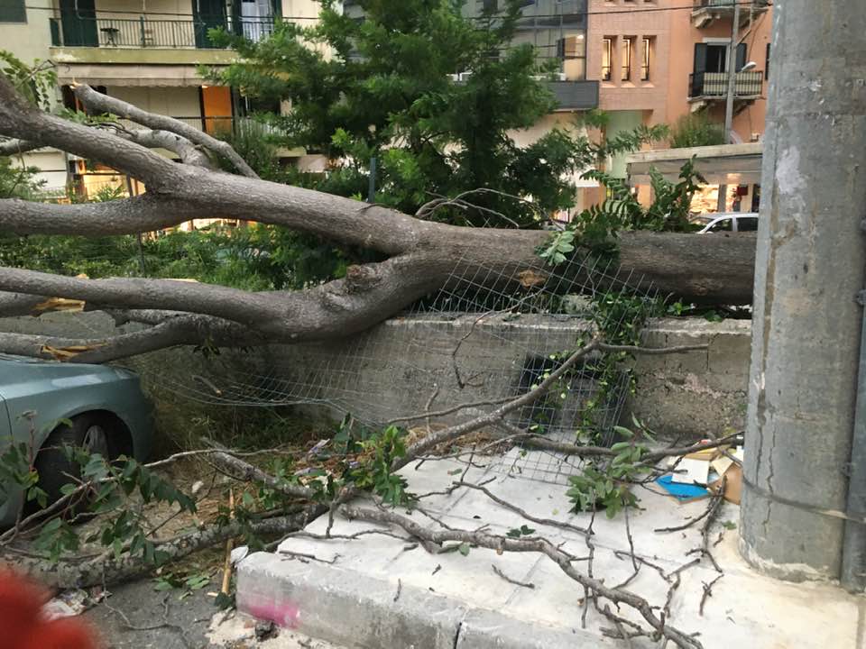 Μεταξύ αυτών, στο Λιστόν έπεσαν κι άλλοι σοβάδες από τα κτίρια, ενώ, στην οδό Αριστοτέλη Σιδέρη έπεσε ένα δέντρο πάνω σε αυτοκίνητα.