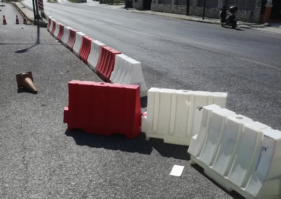Έτσι, σα να μην τρέχει τίποτα, κάποιος/οι οδηγός/οι μετακίνησαν τα εμπόδια και έκαναν τη δουλειά τους λες και δεν τρέχει τίποτα.