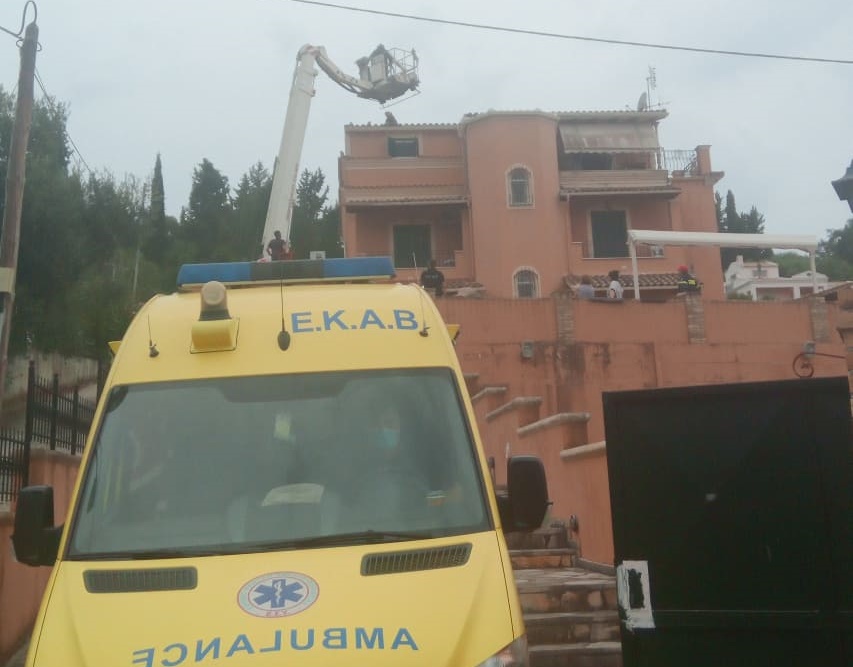 Ένα άτομο έχει εγκλωβιστεί σε στέγη σπιτιού στην περιοχή της Αγίας Αικατερίνης.