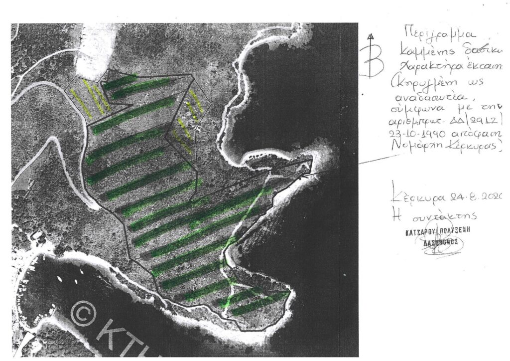 Παράλληλα αξίζει ν αναφέρουμε ότι η Δ/νση Δασών Ν. Κέρκυρας σε σχέση με τη θέση «Άγιος Στέφανος –Ερημίτης» και σε συνδυασμό με την πυρκαγιά που εκδηλώθηκε στις 16-8-2020 και κατέκαψε 159 στρέμματα καταγράφει μεταξύ άλλων τα ακόλουθα: