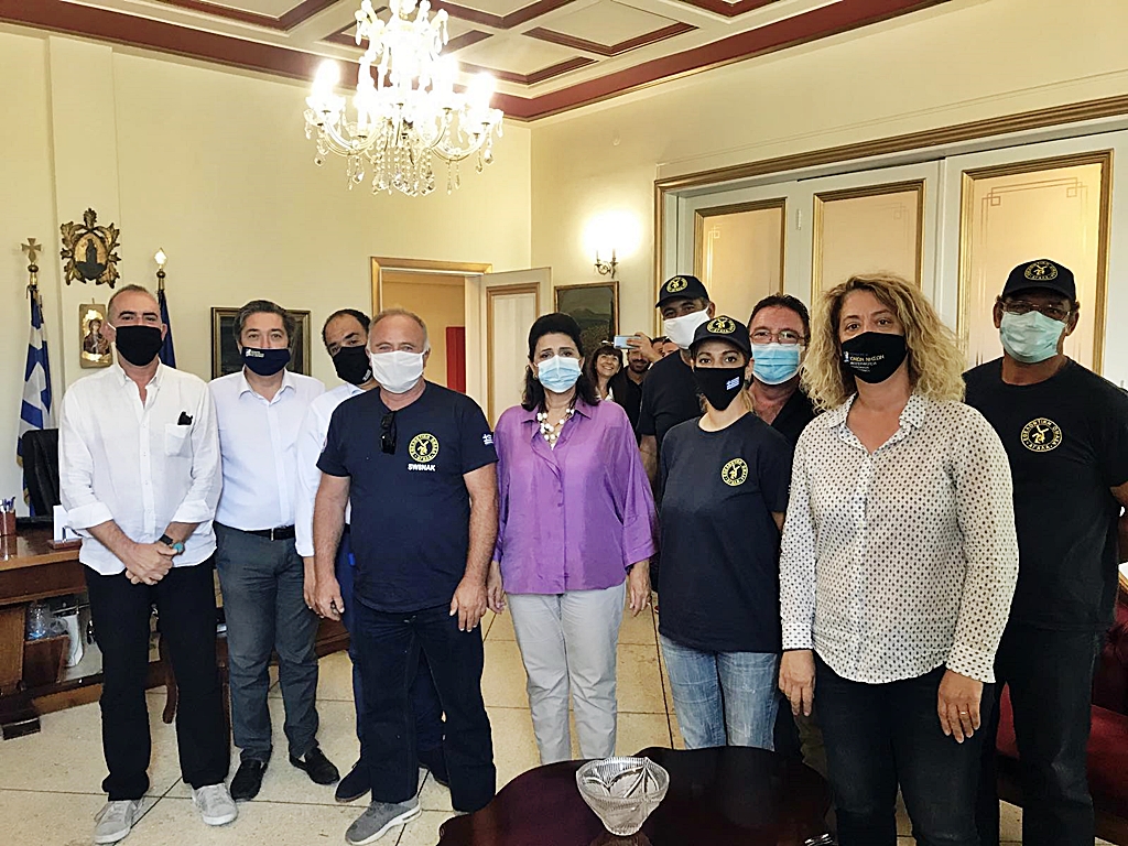 Οι εκπρόσωποι των Εθελοντικών Ομάδων Κερίου κ. Πέτρος Παράσχης, Λιθακιάς κα. Δήμητρα Μαρίνου, Αγαλά κ. Γιάννη Κλάδη, και της Αερολέσχης κ. Στάθης Μαλαπέτσας ενημέρωσαν την Περιφερειάρχη για την αποτελεσματική συνεργασία τους με την Περιφερειακή Ενότητα Ζακύνθου.