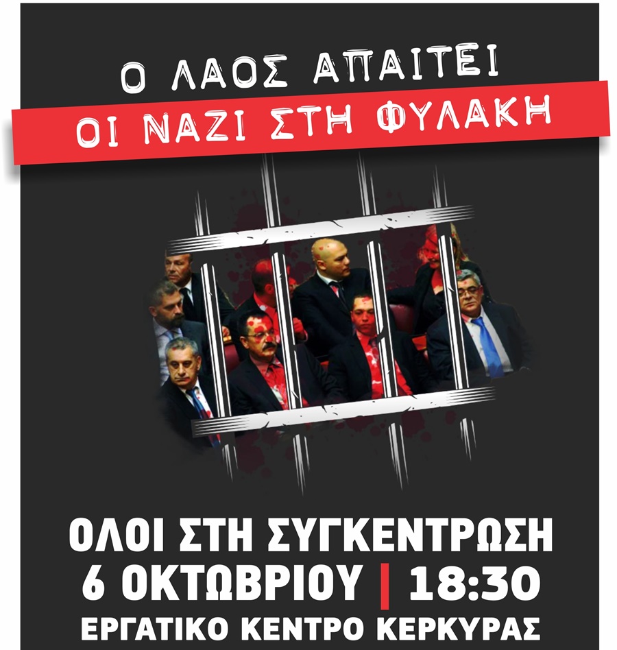 Στις 7 Οκτώβρη βγαίνει η απόφαση για τους ναζιστές της Χρυσής Αυγής. Τα εργατικά σωματεία που συσπειρώνονται στο ΠΑΜΕ καλούν σε συγκέντρωση με αίτημα να καταδικαστούν οι εγκληματίες με την υψηλότερη δυνατή ποινή.