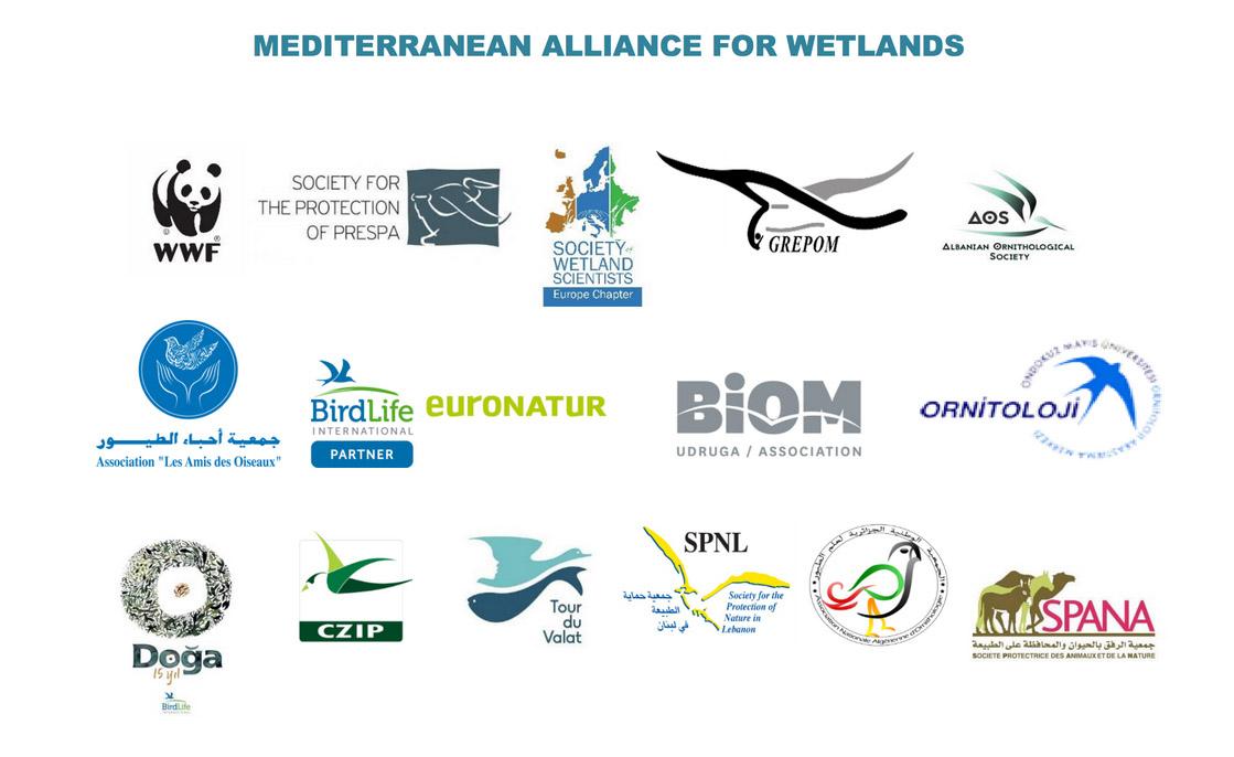 Τα μέλη των οργανώσεων της Mediterranean Wetlands Alliance, των οποίων τα λογότυπα βρίσκονται στην αρχή του γράμματος.