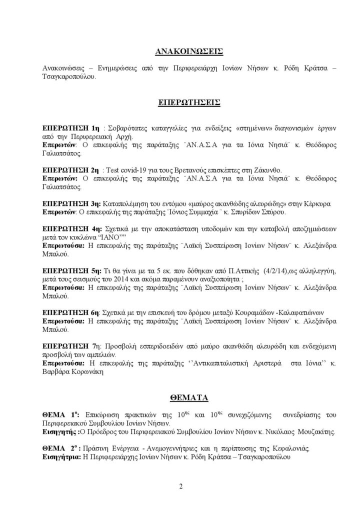 ΠΟΛΙΤΙΚΗΑΥΤΟΔΙΟΙΚΗΣΗΕΙΔΗΣΕΙΣ Περιφερειακό με 14 θέματα και 7 επερωτήσεις Θα πραγματοποιηθεί το Σάββατο 24 Οκτωβρίου (συνεδρίαση νο20) στις 10.30 το πρωί μέσω τηλεδιάσκεψης. Last updated: 19/10/2020 15:18 CorfuPress.com Published: 19/10/2020 Share SHARE Θα πραγματοποιηθεί το Σάββατο 24 Οκτωβρίου (συνεδρίαση νο20) στις 10.30 το πρωί μέσω τηλεδιάσκεψης. Κατεπείγουσες εργασίες στην Ε.Ο. Κέρκυρας – Γύρου Αχιλλείου Eκδήλωση Ενημέρωσης & Παρουσίασης του Επιχειρηματικού Πάρκου Κέρκυρας Αντιπροσωπεία Ευρωβουλευτών έρχονται στην Κέρκυρα Το πρόγραμμα εκδηλώσεων για την ημέρα μνήμης της Γενοκτονίας των Ελλήνων της Μικράς Ασίας Το πρόγραμμα εκδηλώσεων για την ημέρα μνήμης της Γενοκτονίας των Ελλήνων της Μικράς Ασίας Share This Article Facebook Whatsapp Whatsapp Email Copy Link Print Previous Article Η δίκη θα συνεχιστεί την Τετάρτη… Next Article Δύο κρούσματα κορονοϊού στις Φυλακές Δεν υπάρχουν Σχόλια Δεν υπάρχουν Σχόλια Αφήστε μια απάντηση Ακύρωση απάντησηςΗ ηλ. διεύθυνση σας δεν δημοσιεύεται. Τα υποχρεωτικά πεδία σημειώνονται με *Σχόλιο * Όνομα * Email * Ιστότοπος Αποθήκευσε το όνομά μου, email, και τον ιστότοπο μου σε αυτόν τον πλοηγό για την επόμενη φορά που θα σχολιάσω. ΑναζήτησηΑναζήτησηRecent PostsΌλα τα μάτια στον Θοδωρή, τον καπετάνιο μας! Τη Δευτέρα 22 Σεπτεμβρίου γιορτάζει… Σαν Σήμερα 22/9: Τα σημαντικότερα γεγονότα… Η πρόγνωση του καιρού Έφηβοι Ιονίου: Με περίπατο, συνεχίζουν στο Rising Stars! Recent CommentsΧωρίς σχόλια για εμφάνιση.