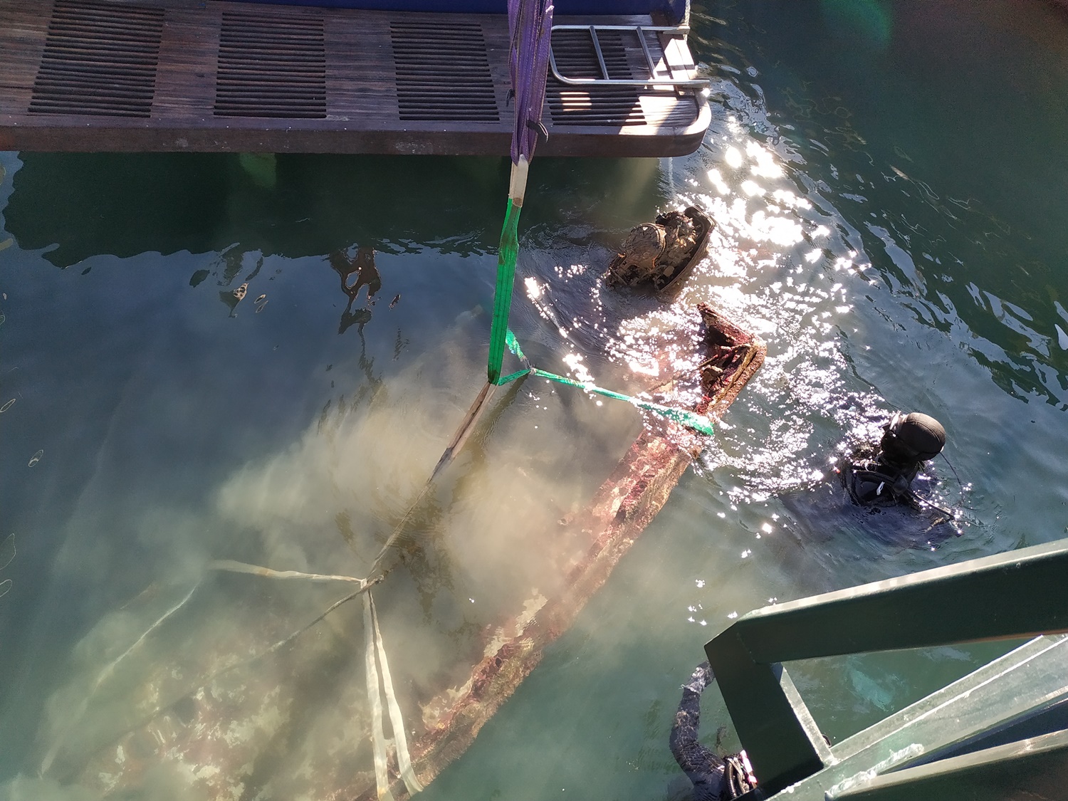 Σχοινιά, λάστιχα αυτοκινήτων αλλά και μια ολόκληρη βάρκα ανέσυραν από τον βυθό οι δύτες στο Παλιό Λιμάνι.