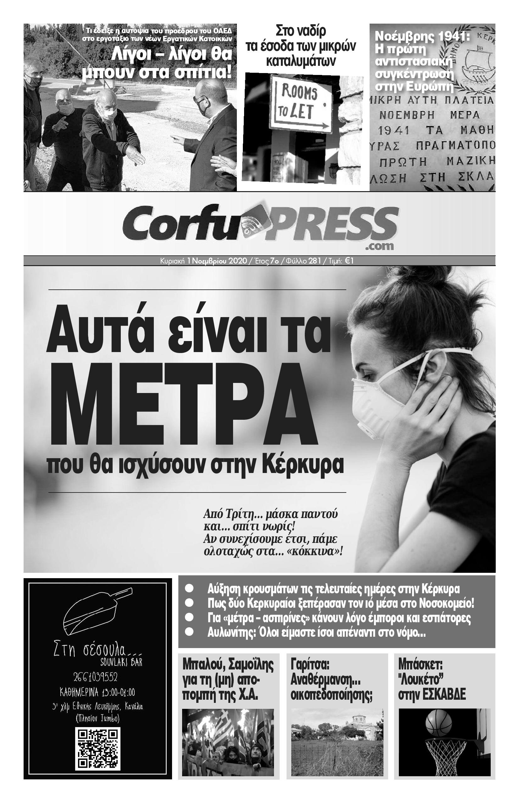 Mην χάσετε την κυριακάτικη εφημερίδα CorfuPress, που περιλαμβάνει πολλά και ενδιαφέροντα θέματα.