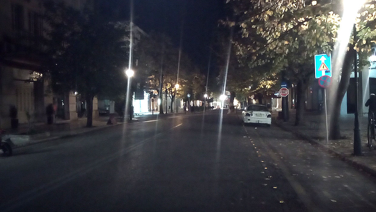 Δώδεκα και δύο λεπτά… Η Κέρκυρα έχει ήδη μετατραπεί σε πόλη – φάντασμα. Στους δρόμους περιπολικά, μηχανές της ΕΛΑΣ, δυο – τρία αυτοκίνητα της υπηρεσίας καθαριότητας, λιγοστά ταξί στις πιάτσες.