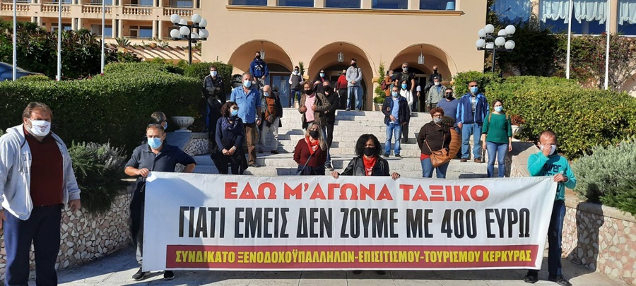 Λίγο αργότερα πραγματοποιήθηκε μία ακόμα συμβολική κινητοποίηση έξω από γνωστό ξενοδοχείο της πόλης, που έστειλε μήνυμα στο τουριστικό κεφάλαιο, ότι οι εργαζόμενοι δεν πρόκειται να ζήσουν με τον εφιάλτη της 10ωρης και 12ωρης δουλειάς, ούτε με μισθούς ψίχουλα και χωρίς Συλλογικές Συμβάσεις Εργασίας.