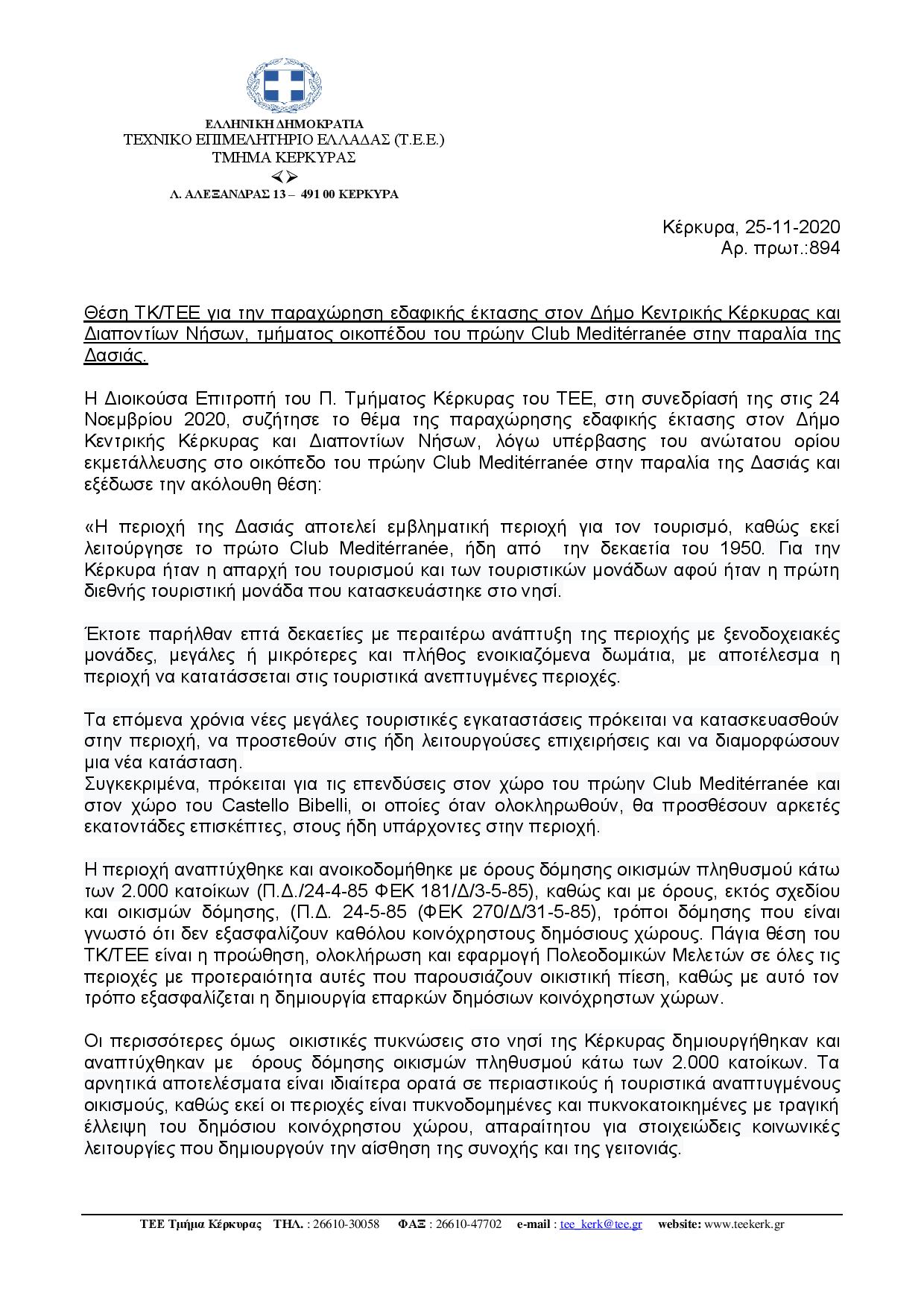 CorfuPress.com > Blog > ΕΙΔΗΣΕΙΣ > ΕΛΕΥΘΕΡΟ > ΚΟΙΝΩΝΙΑ > ΤΕΕ Κέρκυρας: Υπέρ της παραχώρησης γης για το πρώην Club Med