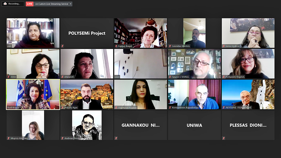 Mε επιτυχία ολοκληρώθηκε η Διαδικτυακή Ενημερωτική Ημερίδα της Περιφέρειας Ιονίων Νήσων με θέμα “Με τουριστικό οδηγό τη λογοτεχνία” του έργου “POLYSEMi” που χρηματοδοτείται από το Πρόγραμμα Interreg Ελλάδα – Ιταλία 2014-2020 και αποσκοπεί στην προώθηση της ενίσχυσης της πολιτιστικής κληρονομιάς και των φυσικών πόρων με εταίρους από Ιταλικής πλευράς το Πανεπιστήμιο του Μπάρι και τον Δήμο Τάραντα και από Ελληνικής πλευράς την Περιφέρεια Ιονίων Νήσων, το Ιόνιο Πανεπιστήμιο (Τμήμα Πληροφορικής) και το Υπουργείο Πολιτισμού και Αθλητισμού.
