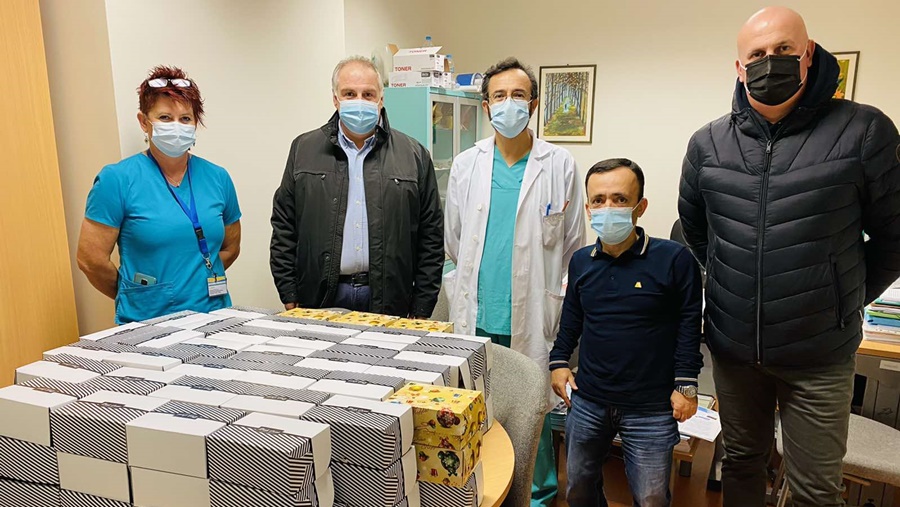 Το Γενικό Νοσοκομείο Κέρκυρας, επισκέφθηκε σήμερα ο Επιχειρηματίας Σπύρος Σιμάτης, ο οποίος πρόσφερε εκατό δέκα κιλά γλυκίσματα, προκειμένου να δοθούν στο Νοσηλευτικό Προσωπικό του Ιδρύματος.