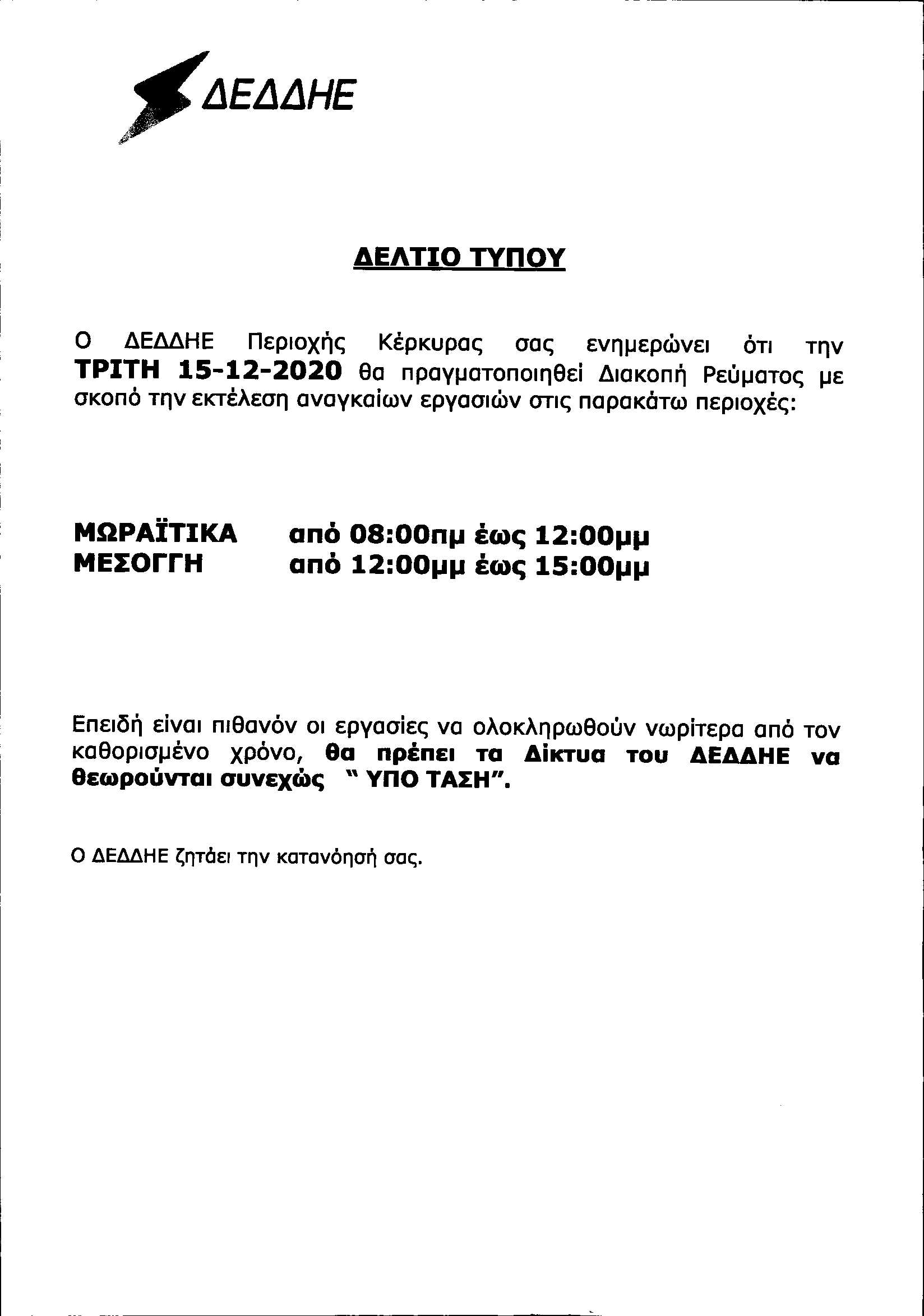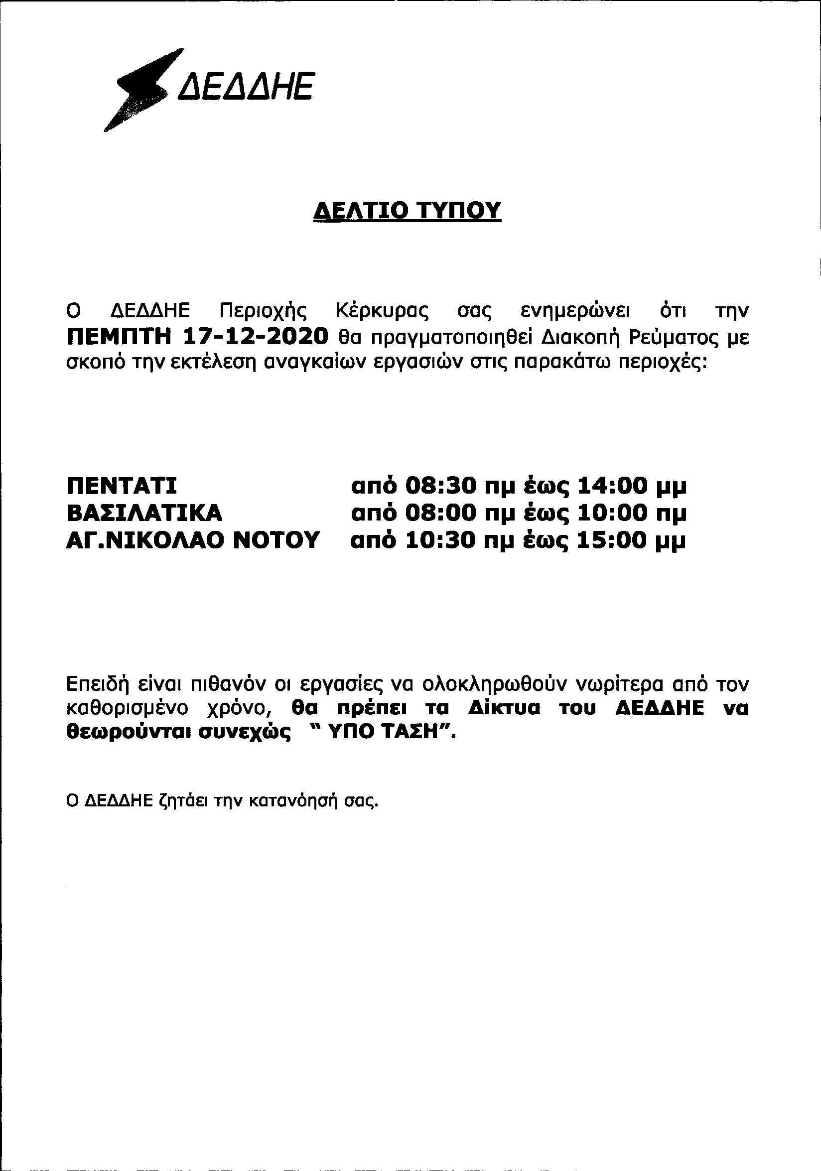 ΚΟΙΝΩΝΙΑΕΛΕΥΘΕΡΟΕΙΔΗΣΕΙΣ Διακοπές ρεύματος την Τρίτη και την Τετάρτη Αιτία, βεβαίως, η εκτέλεση αναγκαίων εργασιών από τον ΔΕΔΔΗΕ. Last updated: 14/12/2020 11:36 CorfuPress.com Published: 14/12/2020 Share SHARE Αιτία, βεβαίως, η εκτέλεση αναγκαίων εργασιών από τον ΔΕΔΔΗΕ. Διακοπή ρεύματος τη Δευτέρα-Δείτε που Που θα γίνει διακοπή ρεύματος την Τετάρτη Που θα γίνει διακοπή ρεύματος την Τετάρτη Που θα γίνουν προγραμματισμένες διακοπές ρεύματος το διάστημα 23-25 Αυγούστου Έρχεται διακοπή ρεύματος στη Βόρεια Κέρκυρα Share This Article Facebook Whatsapp Whatsapp Email Copy Link Print Previous Article ΕΛΑΣ: 6 νέα αυτοκίνητα, 150 αλεξίσφαιρα γιλέκα Next Article Μπαράζ παρεμβάσεων λόγω της κακοκαιρίας (pics) Δεν υπάρχουν Σχόλια Δεν υπάρχουν Σχόλια Αφήστε μια απάντηση Ακύρωση απάντησηςΗ ηλ. διεύθυνση σας δεν δημοσιεύεται. Τα υποχρεωτικά πεδία σημειώνονται με *Σχόλιο * Όνομα * Email * Ιστότοπος Αποθήκευσε το όνομά μου, email, και τον ιστότοπο μου σε αυτόν τον πλοηγό για την επόμενη φορά που θα σχολιάσω. ΑναζήτησηΑναζήτησηRecent PostsΌλα τα μάτια στον Θοδωρή, τον καπετάνιο μας! Τη Δευτέρα 22 Σεπτεμβρίου γιορτάζει… Σαν Σήμερα 22/9: Τα σημαντικότερα γεγονότα… Η πρόγνωση του καιρού Έφηβοι Ιονίου: Με περίπατο, συνεχίζουν στο Rising Stars! Recent CommentsΧωρίς σχόλια για εμφάνιση.