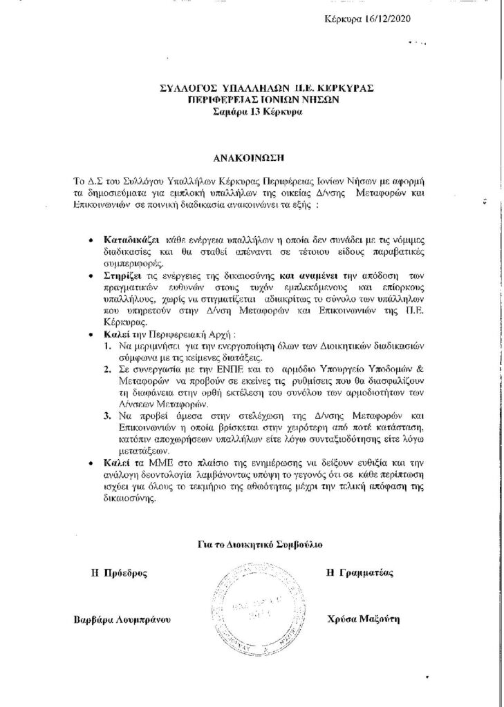 ΕΛΕΥΘΕΡΟΕΙΔΗΣΕΙΣΑΝΑΚΟΙΝΩΣΕΙΣ Ο Σύλλογος Υπαλλήλων ΠΕ Κέρκυρας για τα δημοσιεύματα περί εμπλοκής υπαλλήλων της Δ/νσης Μεταφορών σε ποινική διαδικασία Ανακοίνωση εξέδωσε ο Σύλλογος Υπαλλήλων ΠΕ Κέρκυρας της Περιφέρειας Ιονίων Νήσων. Last updated: 16/12/2020 17:28 CorfuPress.com Published: 16/12/2020 Share SHARE Ανακοίνωση εξέδωσε ο Σύλλογος Υπαλλήλων ΠΕ Κέρκυρας της Περιφέρειας Ιονίων Νήσων. Share This Article Facebook Whatsapp Whatsapp Email Copy Link Print Previous Article Ξεκινά η δημόσια διαβούλευση για τη νέα στρατηγική της ΠΙΝ ενόψει του νέου ΕΣΠΑ Next Article Τροχαίο στους Αργυράδες, απεγκλωβίστηκαν οι επιβάτες Δεν υπάρχουν Σχόλια Δεν υπάρχουν Σχόλια Αφήστε μια απάντηση Ακύρωση απάντησηςΗ ηλ. διεύθυνση σας δεν δημοσιεύεται. Τα υποχρεωτικά πεδία σημειώνονται με *Σχόλιο * Όνομα * Email * Ιστότοπος Αποθήκευσε το όνομά μου, email, και τον ιστότοπο μου σε αυτόν τον πλοηγό για την επόμενη φορά που θα σχολιάσω. ΑναζήτησηΑναζήτησηRecent PostsΌλα τα μάτια στον Θοδωρή, τον καπετάνιο μας! Τη Δευτέρα 22 Σεπτεμβρίου γιορτάζει… Σαν Σήμερα 22/9: Τα σημαντικότερα γεγονότα… Η πρόγνωση του καιρού Έφηβοι Ιονίου: Με περίπατο, συνεχίζουν στο Rising Stars! Recent CommentsΧωρίς σχόλια για εμφάνιση.