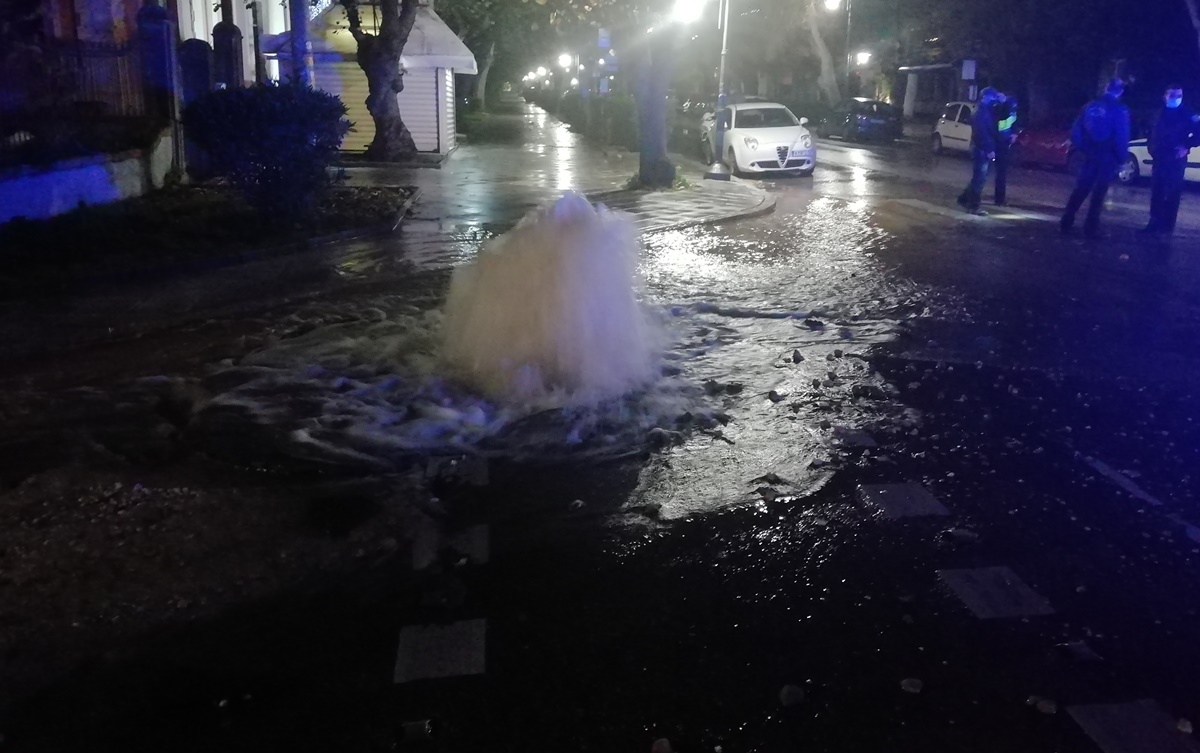 Ένας αγωγός της ΔΕΥΑΚ “έσκασε” περίπου στιε 8.30 το βράδυ του Σαββάτου, στη Λεωφόρο Αλεξάνδρας στη συμβολή με την οδό Αλκινόου.