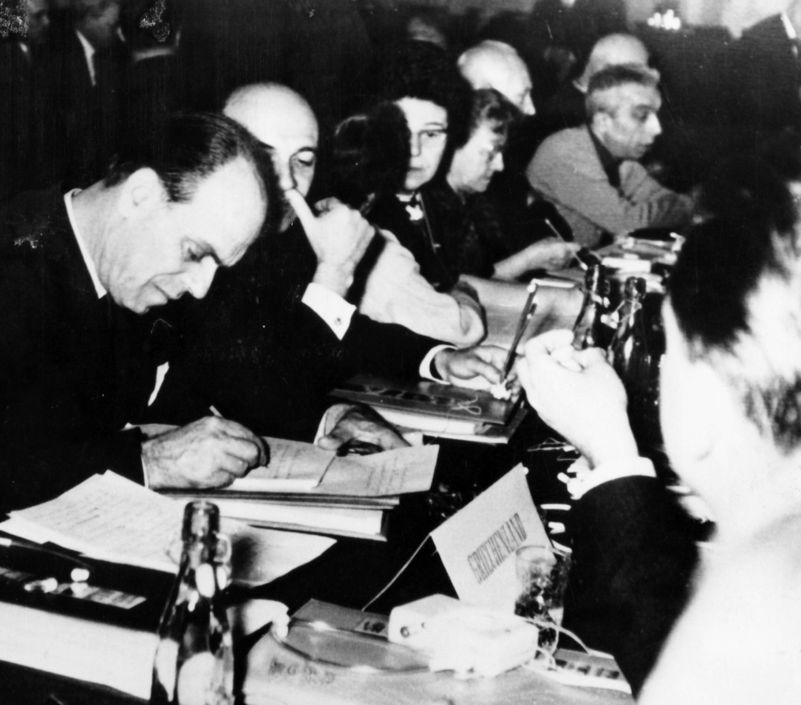 Όπως και -εδώ στην Ιταλία σε συνεδρίασή τους ενώ κρατά σημειώσεις- οι πολλοί φίλοι του στις οργανώσεις των Αντιστασιακών της Ευρώπης.