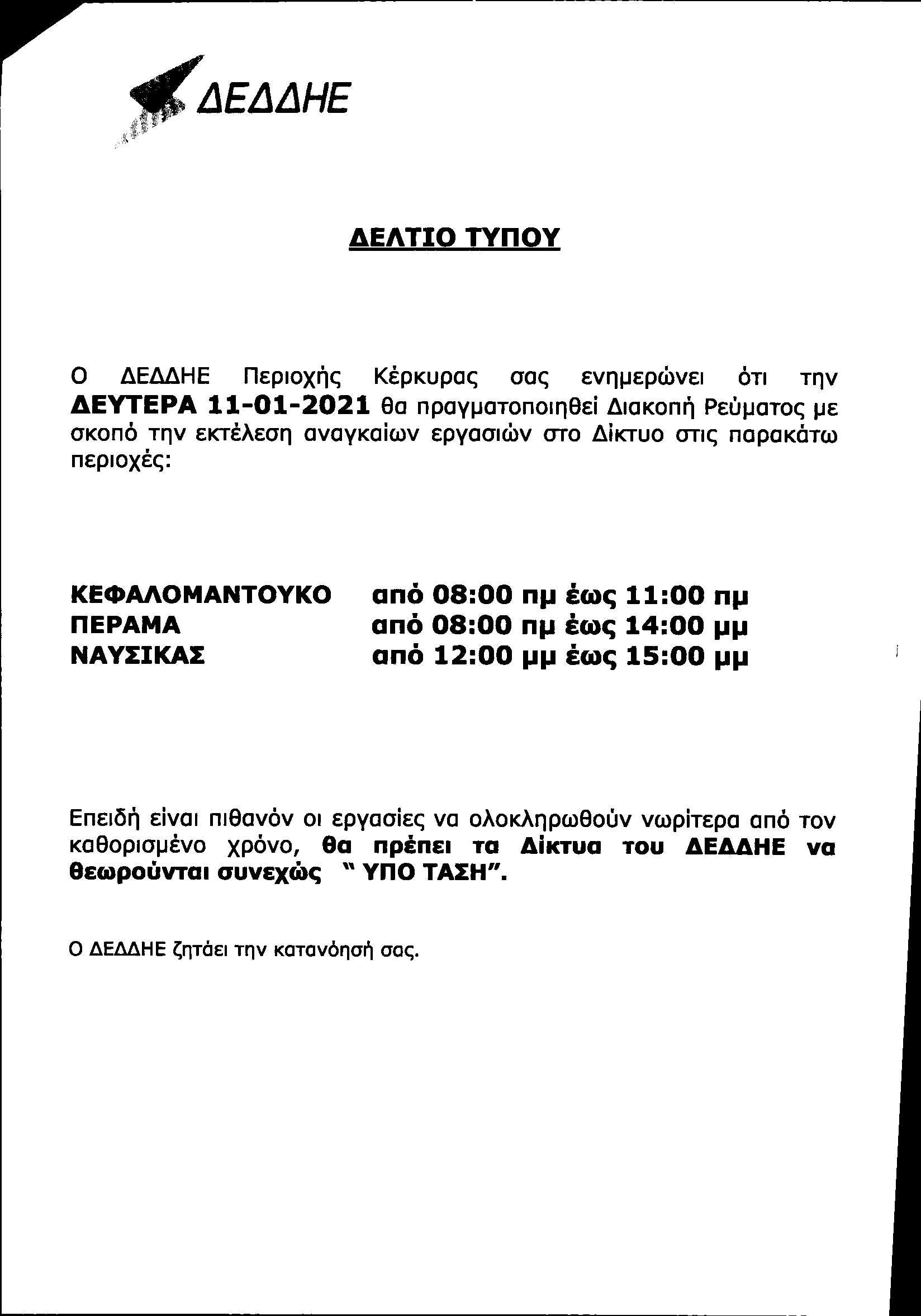 ΚΟΙΝΩΝΙΑΕΛΕΥΘΕΡΟΕΙΔΗΣΕΙΣ Διακοπές ρεύματος σε Κεφαλομάντουκο, Πέραμα και Κανόνι Αιτία, οι αναγκαίες εργασίες που θα πραγματοποιηθούν από τον ΔΕΔΔΗΕ. Last updated: 08/01/2021 16:46 CorfuPress.com Published: 08/01/2021 Share SHARE Αιτία, οι αναγκαίες εργασίες που θα πραγματοποιηθούν από τον ΔΕΔΔΗΕ. Διακοπή ρεύματος τη Δευτέρα-Δείτε που Που θα γίνει διακοπή ρεύματος την Τετάρτη Που θα γίνει διακοπή ρεύματος την Τετάρτη Επιστολή Επιμελητηρίου προς ΔΕΔΔΗΕ για τις πολύωρες διακοπές ρεύματος Που θα γίνουν προγραμματισμένες διακοπές ρεύματος το διάστημα 23-25 Αυγούστου Share This Article Facebook Whatsapp Whatsapp Email Copy Link Print Previous Article Το έργο «ΒΙΟΜΝΗΜΕΣ» και οι Υπεραιωνόβιοι Ελαιώνες και Ελαιόδενδρα στο Ιόνιο Next Article Η ΛΑΣΥ Ιονίων για την κατάρρευση του δρόμου στην Ιθάκη Δεν υπάρχουν Σχόλια Δεν υπάρχουν Σχόλια Αφήστε μια απάντηση Ακύρωση απάντησηςΗ ηλ. διεύθυνση σας δεν δημοσιεύεται. Τα υποχρεωτικά πεδία σημειώνονται με *Σχόλιο * Όνομα * Email * Ιστότοπος Αποθήκευσε το όνομά μου, email, και τον ιστότοπο μου σε αυτόν τον πλοηγό για την επόμενη φορά που θα σχολιάσω. ΑναζήτησηΑναζήτησηRecent PostsΌλα τα μάτια στον Θοδωρή, τον καπετάνιο μας! Τη Δευτέρα 22 Σεπτεμβρίου γιορτάζει… Σαν Σήμερα 22/9: Τα σημαντικότερα γεγονότα… Η πρόγνωση του καιρού Έφηβοι Ιονίου: Με περίπατο, συνεχίζουν στο Rising Stars! Recent CommentsΧωρίς σχόλια για εμφάνιση.