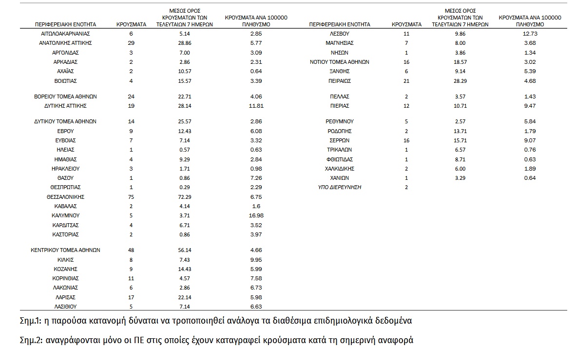 Αναλυτικά, η διασπορά των κρουσμάτων που ανακοινώθηκαν την Κυριακή