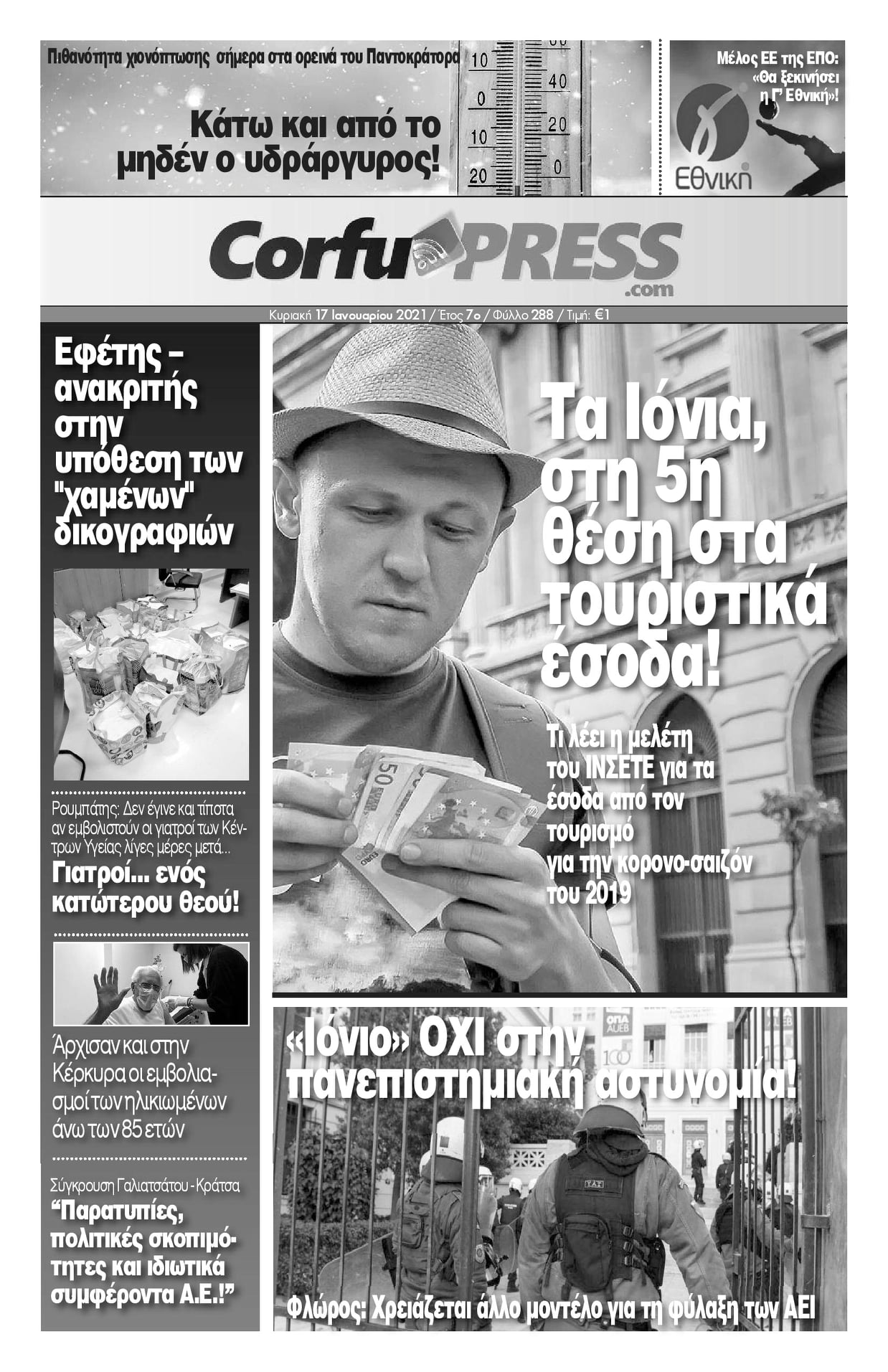 Mην χάσετε την εφημερίδα CorfuPress της Κυριακής, που περιλαμβάνει πολλά και ενδιαφέροντα θέματα.