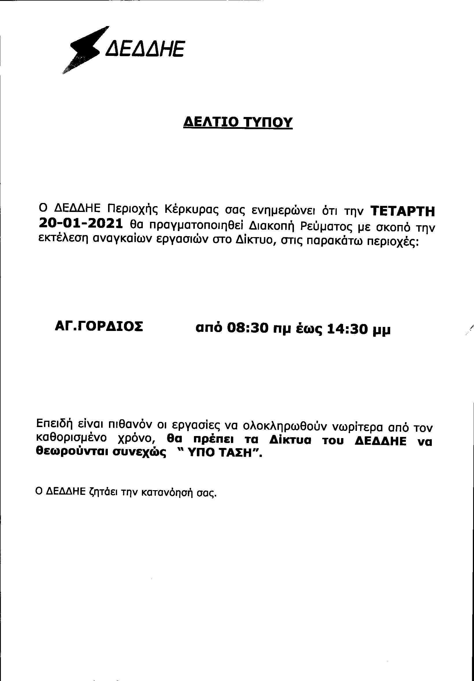 ΚΟΙΝΩΝΙΑΕΛΕΥΘΕΡΟΕΙΔΗΣΕΙΣ Διακοπή ρεύματος στον Άη Γόρδη Αιτία, οι εργασίες του ΔΕΔΔΗΕ στο Δίκτυο. Last updated: 18/01/2021 16:22 CorfuPress.com Published: 18/01/2021 Share SHARE Αιτία, οι εργασίες του ΔΕΔΔΗΕ στο Δίκτυο. Διακοπή ρεύματος τη Δευτέρα-Δείτε που Που θα γίνει διακοπή ρεύματος την Τετάρτη Που θα γίνει διακοπή ρεύματος την Τετάρτη Που θα γίνουν προγραμματισμένες διακοπές ρεύματος το διάστημα 23-25 Αυγούστου Έρχεται διακοπή ρεύματος στη Βόρεια Κέρκυρα Share This Article Facebook Whatsapp Whatsapp Email Copy Link Print Previous Article “Ψυχολογία για Όλους” από το Πανεπιστήμιο Αιγαίου σε συνεργασία με το Δήμο Next Article ΕΛΜΕ: Για την αξιολόγηση των μαθητών και Σχέδιο Πρακτικού Δεν υπάρχουν Σχόλια Δεν υπάρχουν Σχόλια Αφήστε μια απάντηση Ακύρωση απάντησηςΗ ηλ. διεύθυνση σας δεν δημοσιεύεται. Τα υποχρεωτικά πεδία σημειώνονται με *Σχόλιο * Όνομα * Email * Ιστότοπος Αποθήκευσε το όνομά μου, email, και τον ιστότοπο μου σε αυτόν τον πλοηγό για την επόμενη φορά που θα σχολιάσω. ΑναζήτησηΑναζήτησηRecent PostsΌλα τα μάτια στον Θοδωρή, τον καπετάνιο μας! Τη Δευτέρα 22 Σεπτεμβρίου γιορτάζει… Σαν Σήμερα 22/9: Τα σημαντικότερα γεγονότα… Η πρόγνωση του καιρού Έφηβοι Ιονίου: Με περίπατο, συνεχίζουν στο Rising Stars! Recent CommentsΧωρίς σχόλια για εμφάνιση.