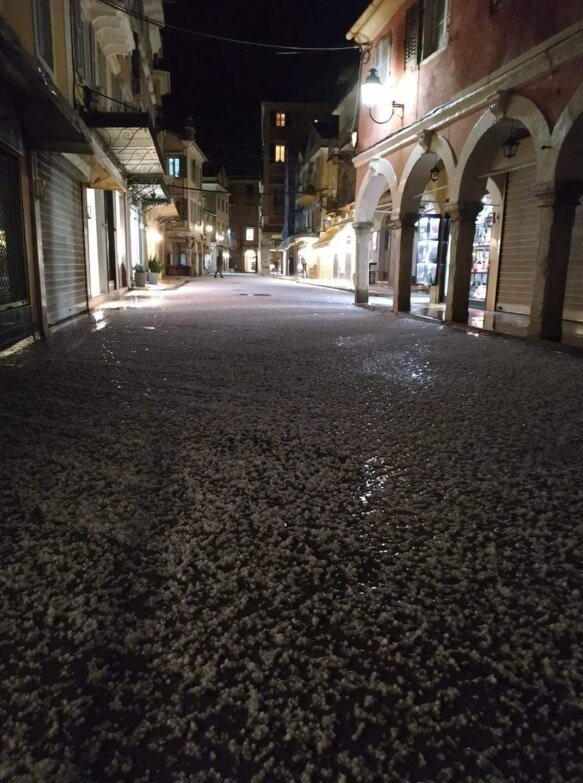 Νέο κύμα κακοκαιρίας αναμένεται να πλήξει την Κέρκυρα σήμερα, Κυριακή, με χαρακτηριστικά τους θυελλώδεις ανέμους αλλά και τις κατά περιόδους ισχυρές βροχοπτώσεις. Το κύμα κακοκαιρίας το Σάββατο δημιούργησε σειρά πρόσκαιρων προβλημάτων χωρίς όμως ιδιαίτερες ζημιές, ενώ η χαλαζόπτωση έκανε περιοχές της πόλης να θυμίζουν… χιονισμένα μέρη!