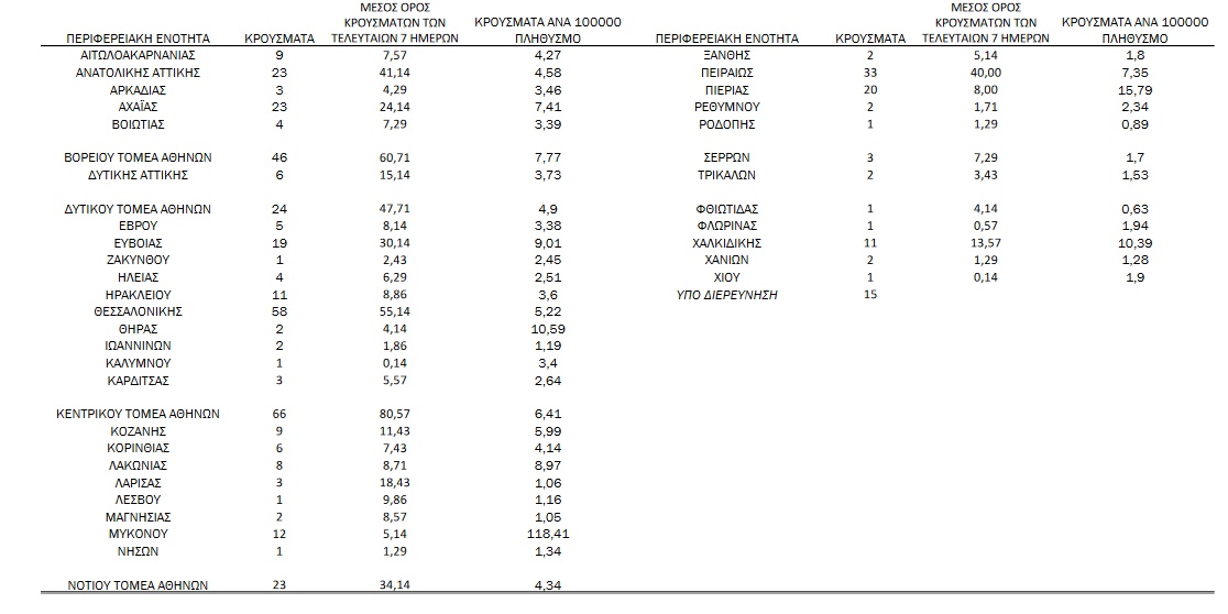 Αναλυτικά, η διασπορά των 484 κρουσμάτων ανά περιφερειακή ενότητα