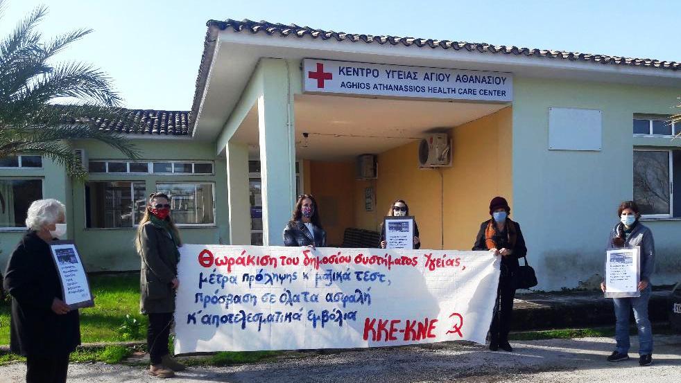 Το ΚΚΕ στηρίζει έμπρακτα τους εργαζόμενους στην Δημόσια Υγεία και με τις συμβολικές δράσεις του έξω από τα ΚΥ της Κέρκυρας -με όλα τα απαραίτητα μέτρα προστασίας- απαιτεί: