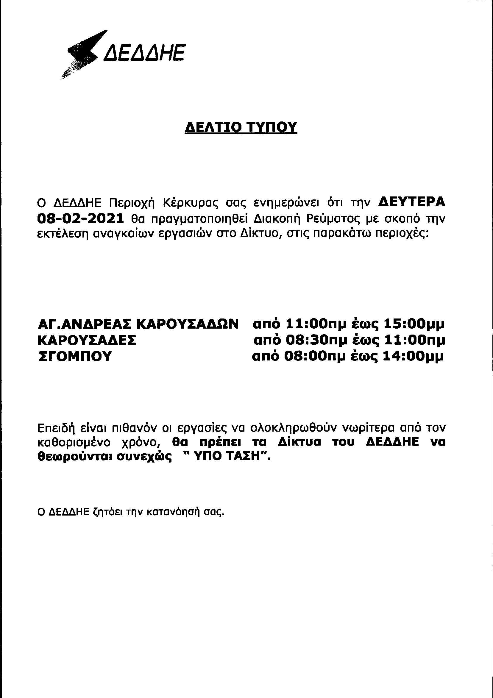 ΚΟΙΝΩΝΙΑΕΛΕΥΘΕΡΟΕΙΔΗΣΕΙΣ Νέες διακοπές ρεύματος Δευτέρα και Τρίτη Θα πραγματοποιηθούν εργασίες στο Δίκτυο. Last updated: 05/02/2021 15:04 CorfuPress.com Published: 05/02/2021 Share SHARE Θα πραγματοποιηθούν εργασίες στο Δίκτυο. Διακοπή ρεύματος τη Δευτέρα-Δείτε που Που θα γίνει διακοπή ρεύματος την Τετάρτη Που θα γίνει διακοπή ρεύματος την Τετάρτη Που θα γίνουν προγραμματισμένες διακοπές ρεύματος το διάστημα 23-25 Αυγούστου Έρχεται διακοπή ρεύματος στη Βόρεια Κέρκυρα Share This Article Facebook Whatsapp Whatsapp Email Copy Link Print Previous Article Ερωτήσεις ΚΚΕ για τους εργαζόμενους στον επισιτισμό-τουρισμό και για τους ξεναγούς Next Article Τεχνικές παρεμβάσεις στο δήμο βόρειας Κέρκυρας Δεν υπάρχουν Σχόλια Δεν υπάρχουν Σχόλια Αφήστε μια απάντηση Ακύρωση απάντησηςΗ ηλ. διεύθυνση σας δεν δημοσιεύεται. Τα υποχρεωτικά πεδία σημειώνονται με *Σχόλιο * Όνομα * Email * Ιστότοπος Αποθήκευσε το όνομά μου, email, και τον ιστότοπο μου σε αυτόν τον πλοηγό για την επόμενη φορά που θα σχολιάσω. ΑναζήτησηΑναζήτησηRecent PostsΌλα τα μάτια στον Θοδωρή, τον καπετάνιο μας! Τη Δευτέρα 22 Σεπτεμβρίου γιορτάζει… Σαν Σήμερα 22/9: Τα σημαντικότερα γεγονότα… Η πρόγνωση του καιρού Έφηβοι Ιονίου: Με περίπατο, συνεχίζουν στο Rising Stars! Recent CommentsΧωρίς σχόλια για εμφάνιση.
