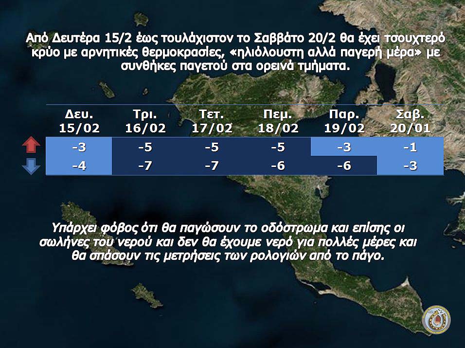 «Η μεταβολή του καιρού σε καθαρά χειμωνιάτικες συνθήκες θα γίνει αισθητή σε όλη τη χώρα και μάλιστα αξιόλογες χιονοπτώσεις θα σημειωθούν σε αρκετές ορεινές – ημιορεινές αλλά ακόμη και ημιπεδινές περιοχές (ίσως, πάνω από τα 200-300 μέτρα) της κεντρικής και βόρειας Ελλάδας, επαληθεύοντας στο ακέραιο τις προγνώσεις των μετεωρολόγων».